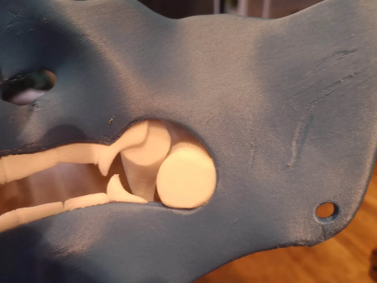 Chỉ cần cắt bỏ các khuyết điểm bằng một con dao trên răng và mặt nạ để ngăn chặn khoảng trống do các khối thừa trong phần nhô ra tạo ra, sau đó tôi đã sử dụng một ít keo siêu dính.