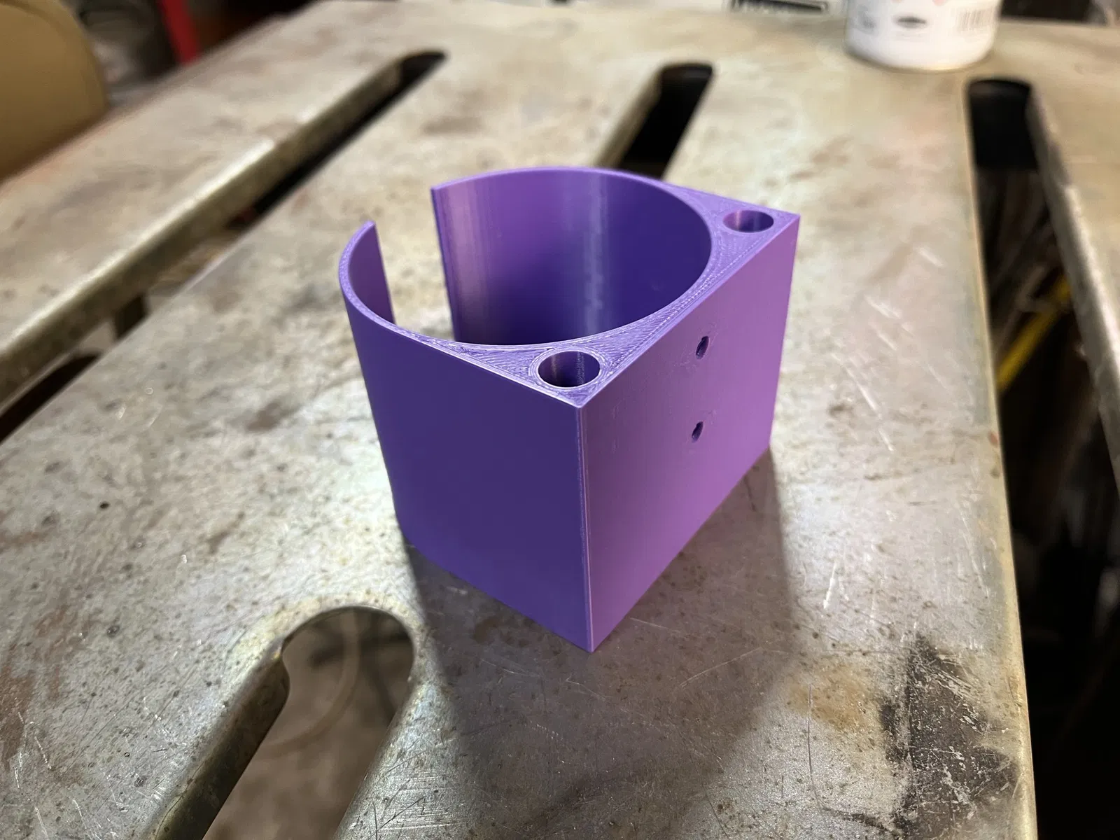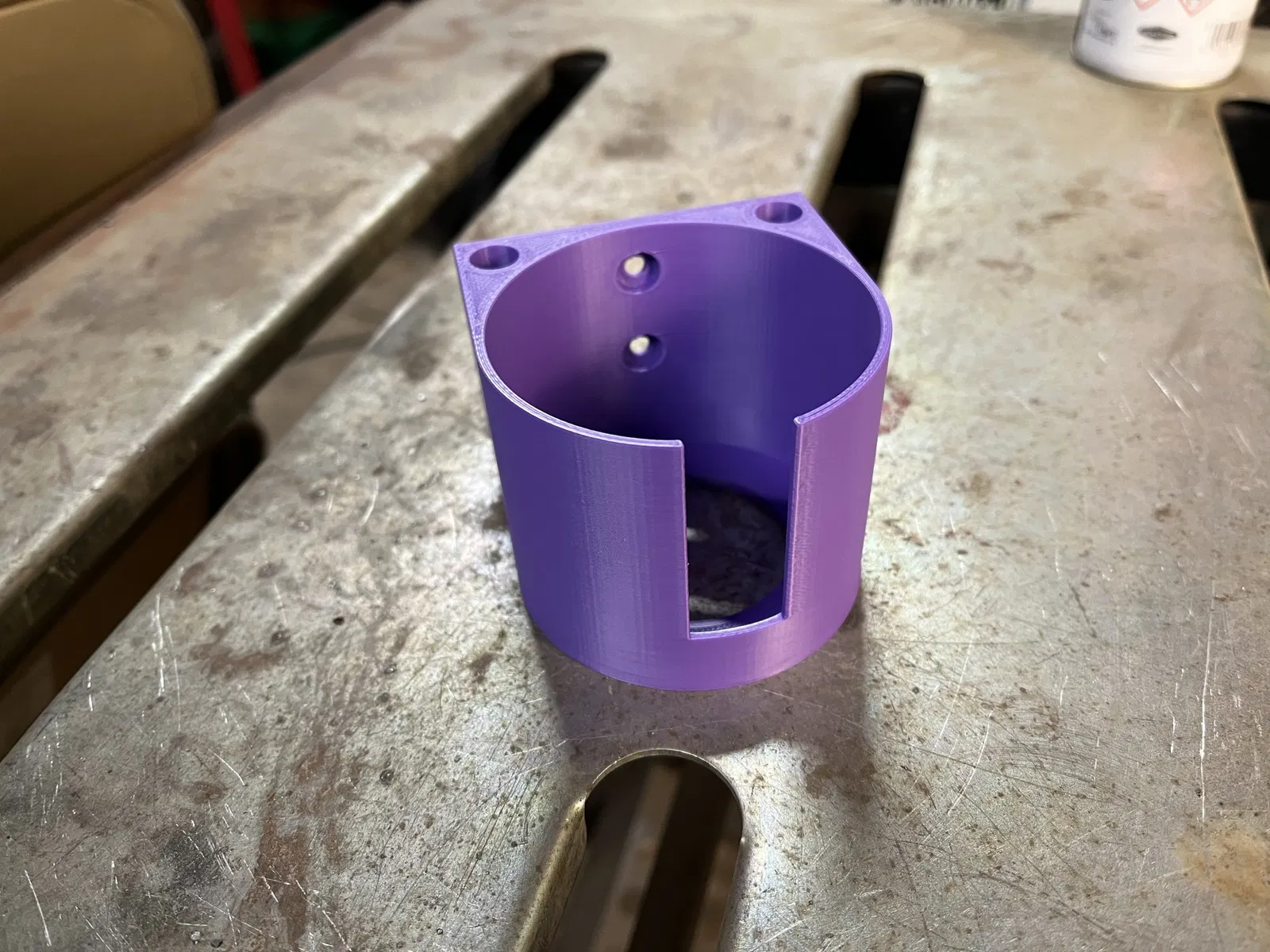 Giá đỡ lon có thể gắn tường đơn. Lỗ mở có đường kính 70mm để chứa hầu hết các hộp xịt, cũng như các lon đồ uống và cốc. Có hai lỗ nhỏ đóng kín để lưu trữ ống hút/bàn chải/bút/v.v. Các lỗ gắn được kích thước cho vít #6.