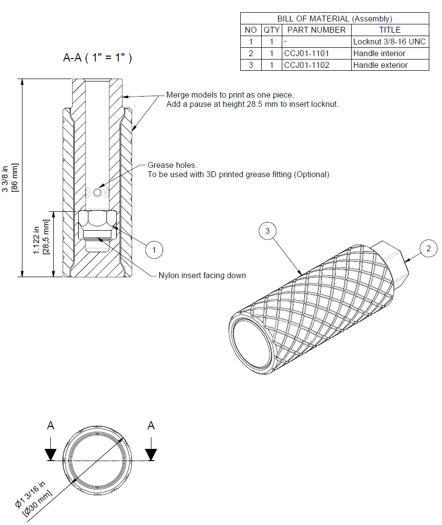 Đây là một tay quay nhỏ để sử dụng cho nhiều dự án DIY. Gộp CCJ01-1101 và CCJ01-1102 trong máy cắt của bạn và in ra như một mảnh. Mảnh trong hình sử dụng một cần bằng thép không gỉ để tăng cường độ bền nhưng nó cũng có thể được in (CCJ01-1001). In và sử dụng đầu bôi mỡ nếu bạn muốn bôi mỡ cho hệ thống ổ bi. Việc bôi mỡ là tùy chọn.