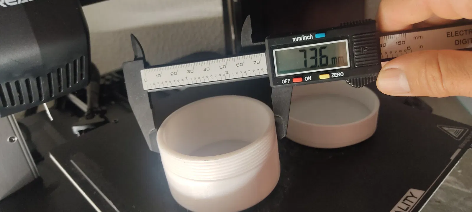 Trên bản in thử nghiệm của tôi, tôi đã phải mài một chút ở các ren và góc, để chúng có thể vặn vào một cách mượt mà, hãy thoải mái chỉnh sửa thiết kế này và thêm nhiều không gian hơn giữa thân và nắp.