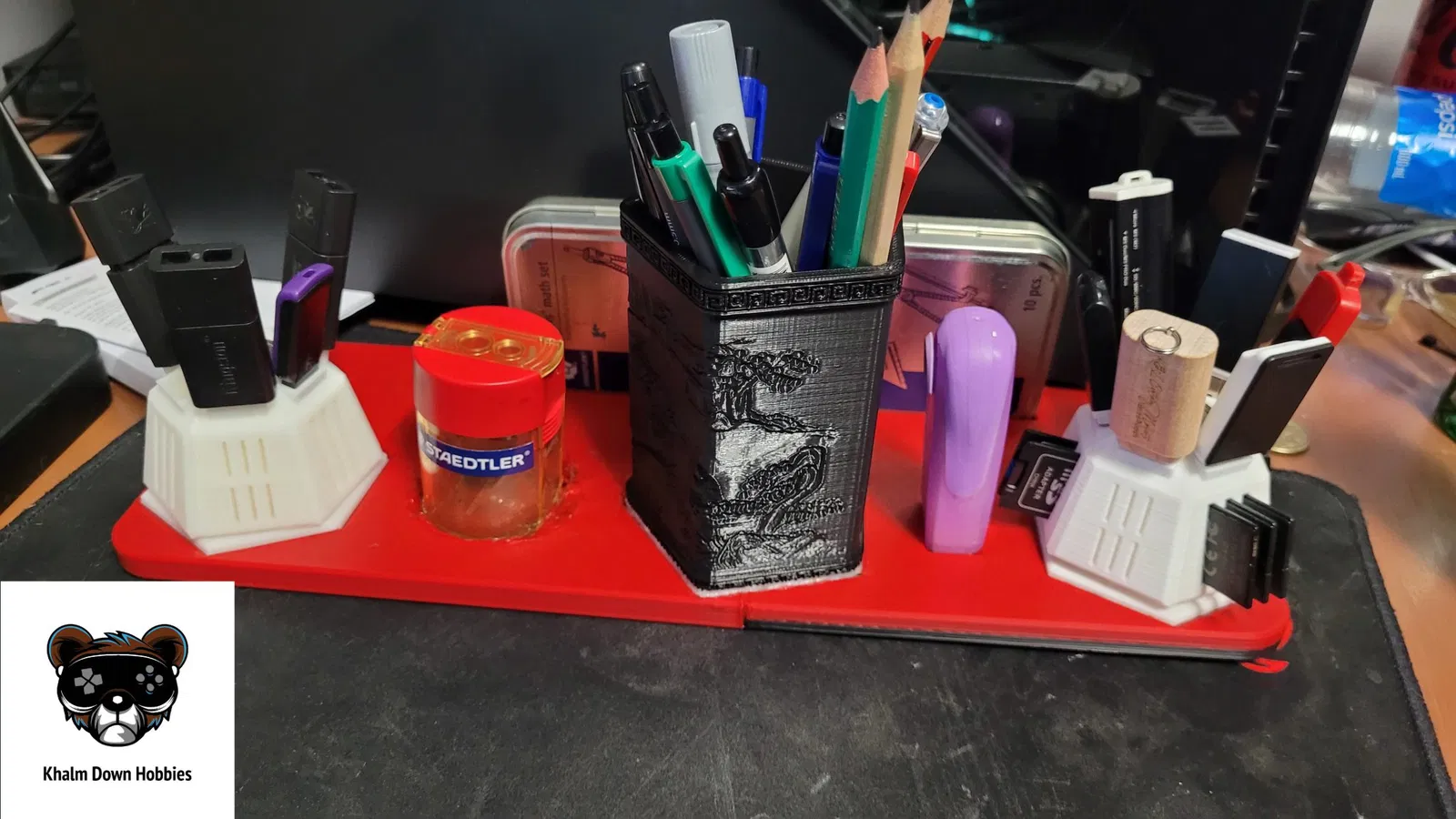 Đây là một bộ tổ chức bàn đơn giản cho người Mỹ. Nó kết hợp một vài thiết kế chính cùng với một chỗ cho máy gọt bút chì của tôi (Cái được sử dụng trong các hình ảnh không phải là cái gốc vì vậy nó bị biến đổi một cách tạm bợ) một cục tẩy (rubber cho người Mỹ) và một bộ toán Norris, đây là một bộ dụng cụ phổ biến ở Úc. Nó được cắt thành 2 mảnh đánh dấu bên trái và bên phải cũng như một mảnh nguyên nếu bạn có một cái giường đủ lớn.