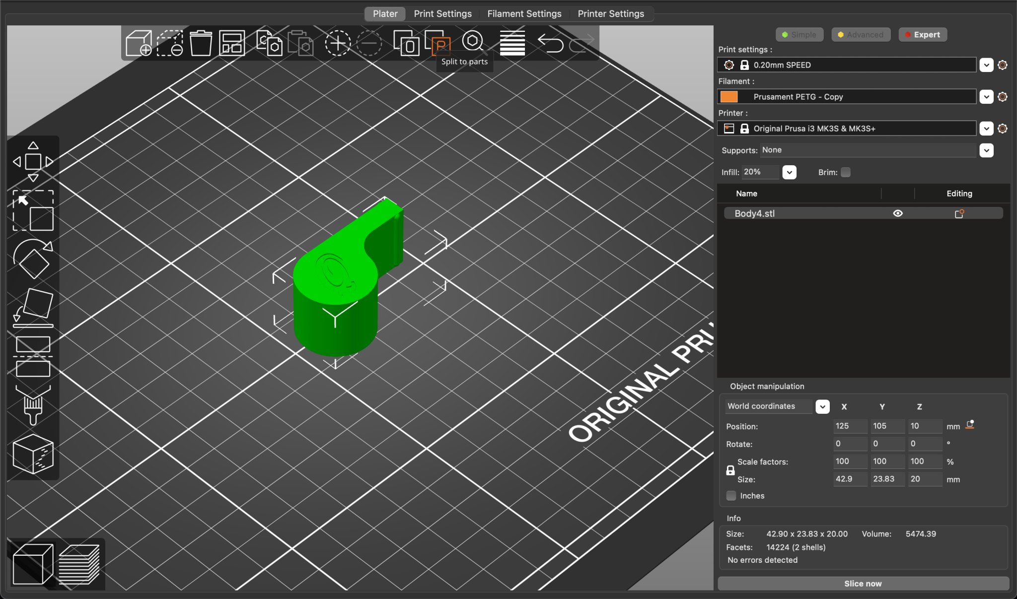 In ấn bằng PLA hoặc PETG. Khi bạn tải nó vào slicer prusa của mình, hãy chia thành các phần, đừng chia thành các đối tượng để quả bóng giữ nguyên vị trí. Bây giờ bạn sẽ có cái còi và quả bóng tách rời, sau đó thêm infill và perimeters bổ sung vào cài đặt của quả bóng và đặt chúng ở mức 0% infill, và một perimeter với 3 lớp dưới và 3 lớp trên (quả bóng càng nhẹ càng tốt). Ngoài ra, hãy in bình thường. Cũng hãy sử dụng "Ngẫu nhiên" cho việc căn chỉnh đường nối hoặc đảm bảo rằng nó không nằm ở điểm thắt cổ chai nơi nhỏ nhất. Sau khi in xong, hãy gỡ bỏ quả bóng khỏi cái còi qua lỗ thông hơi ở trên và nó sẽ hoạt động tốt.