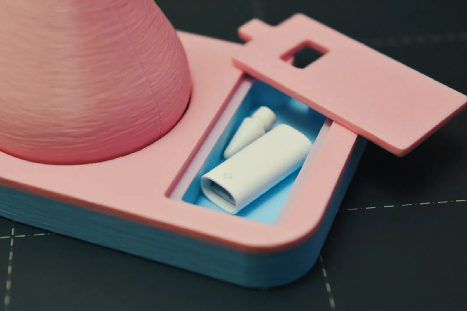 Stand First Pencil Pencil thế hệ đầu tiên, với cơ sở để sạc và ngăn cho các mẹo và phụ kiện bút chì thay thế.