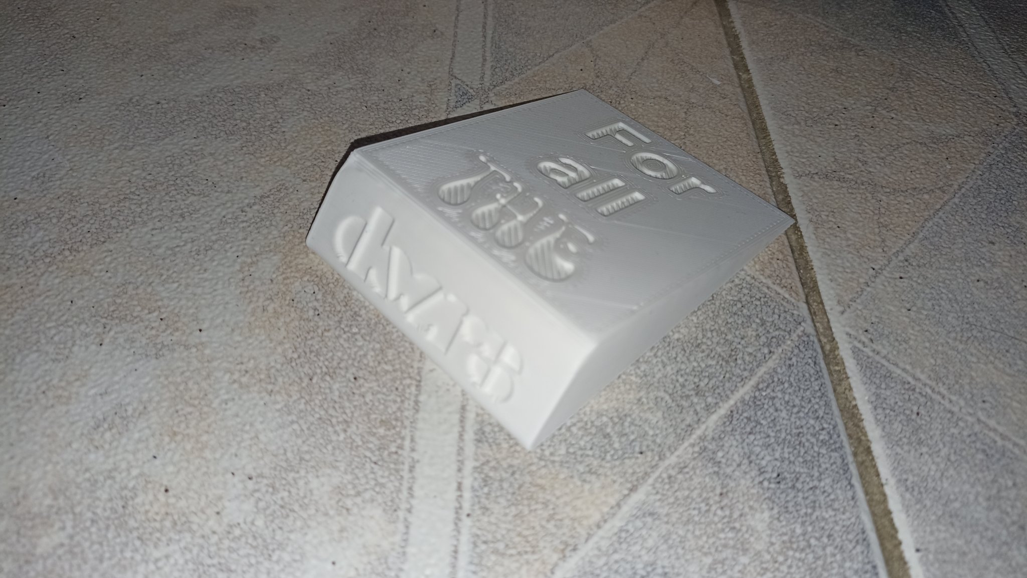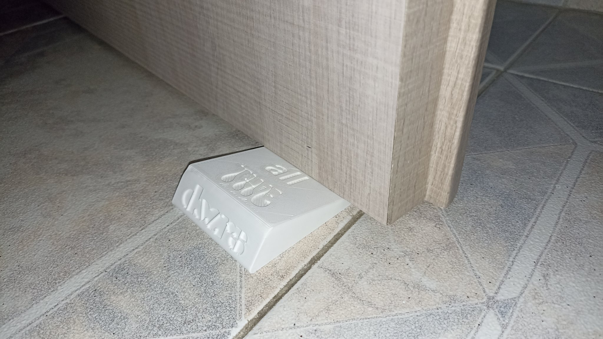 Cái chặn cửa với một trò chơi chữ vui. In với chữ (For all THE) hướng xuống và chỉ sơn chúng màu đen.