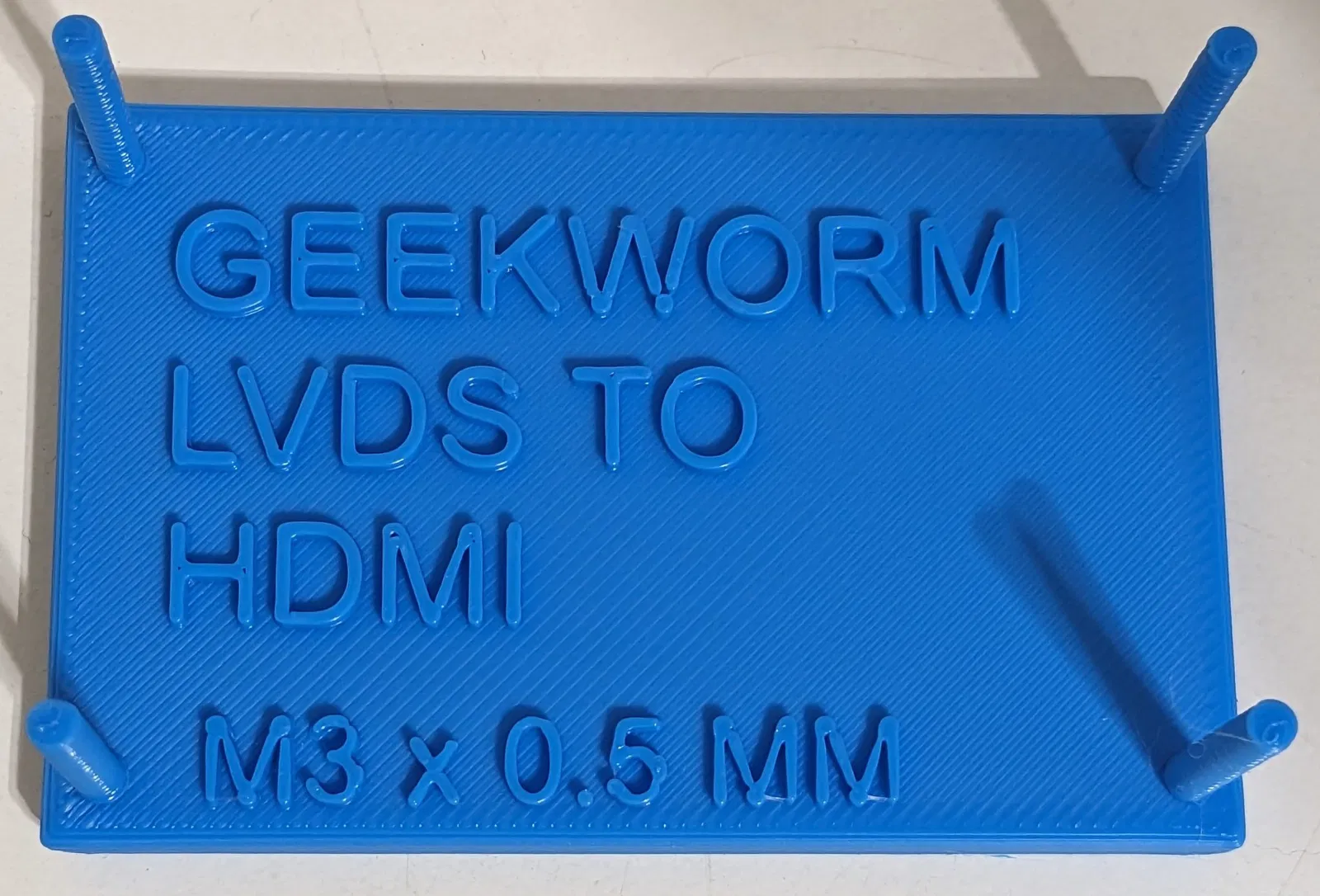 Đây là một giá đỡ cho bo mạch chuyển đổi Geekworm LVDS sang HDMI. Nó sử dụng 4 ốc vít gắn trên bo mạch làm cột hỗ trợ. Các cột có ren M3 cho phép bạn cố định chúng bằng một đai ốc.