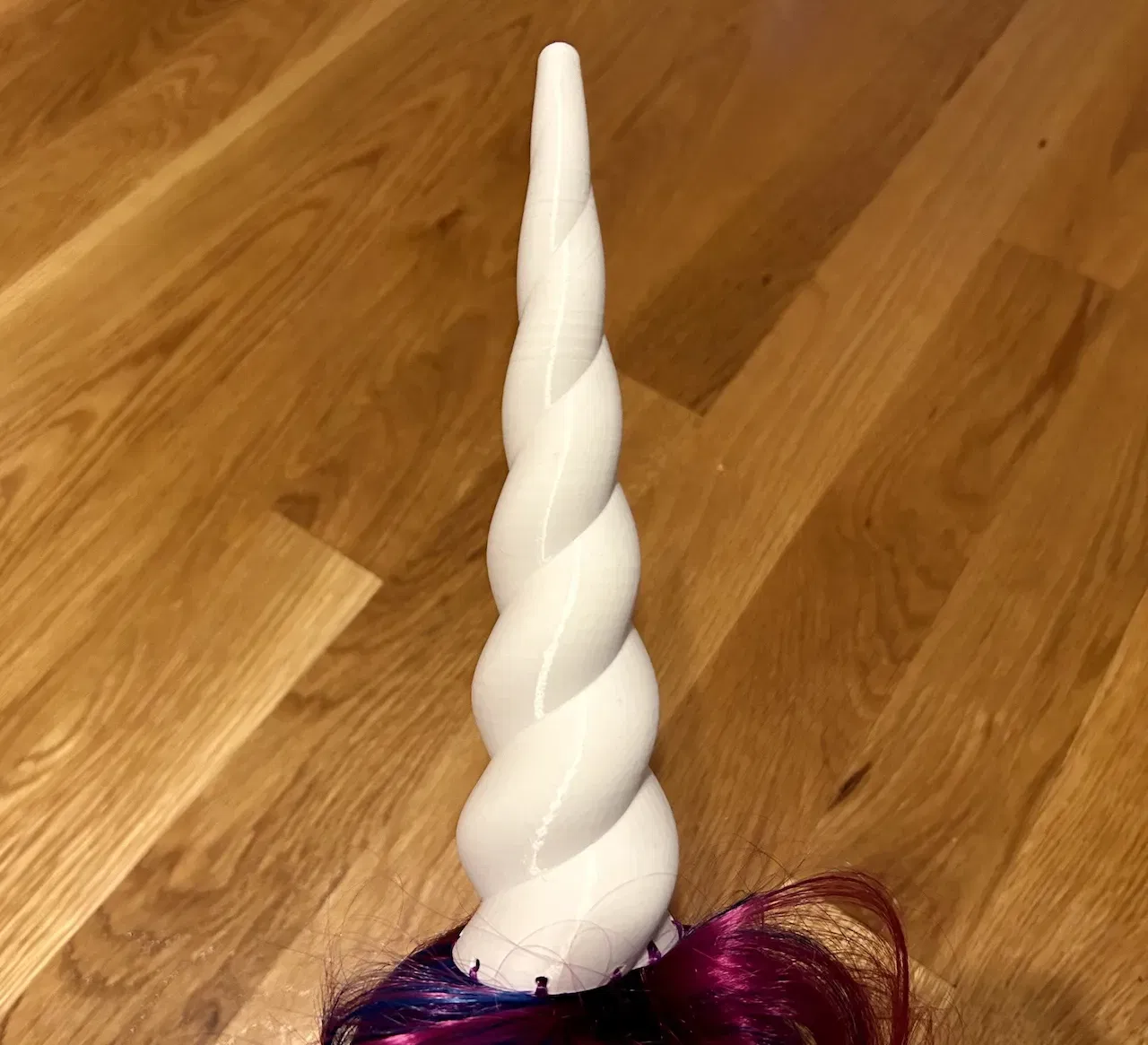Đây là một chiếc sừng kỳ lân có thể được sử dụng cho trang phục. Vòng lỗ ở đáy của sừng cho phép may vào một cái tóc giả hoặc mũ khác. Nó có một đầu tròn để ngăn chặn việc đâm phải một cách tình cờ khi đang đeo.