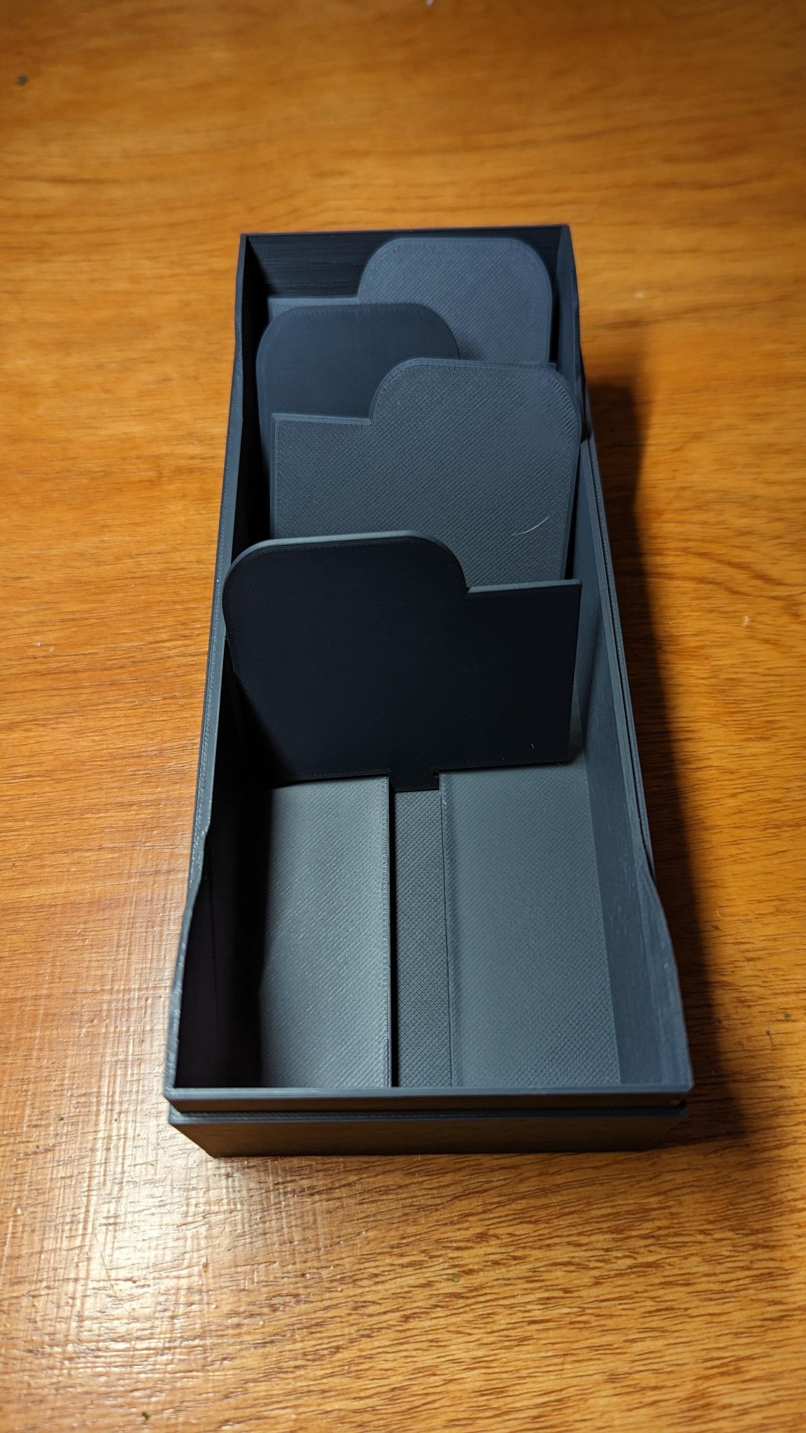 Một hộp thẻ với các ngăn được tích hợp vào đáy hộp. Nó được thiết kế cho các thẻ chỉ mục nhỏ, nhưng có thể dễ dàng điều chỉnh kích thước để phù hợp với kích thước của các thẻ của bạn.