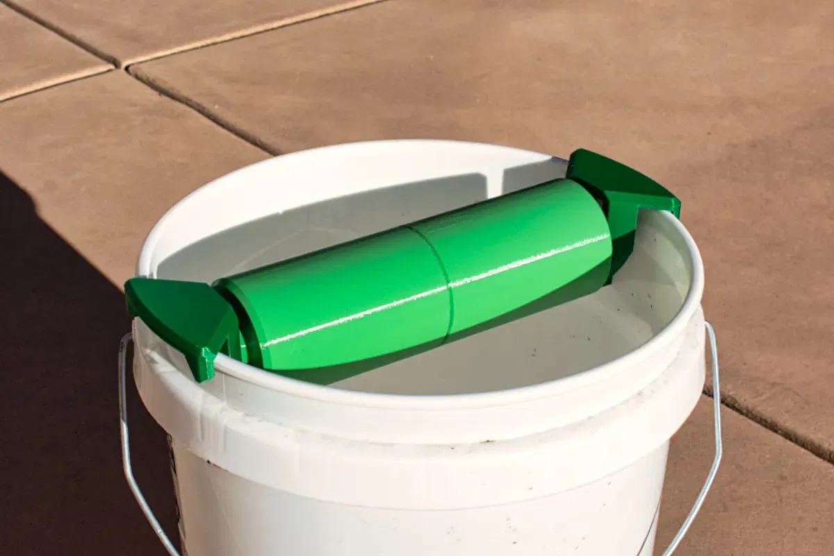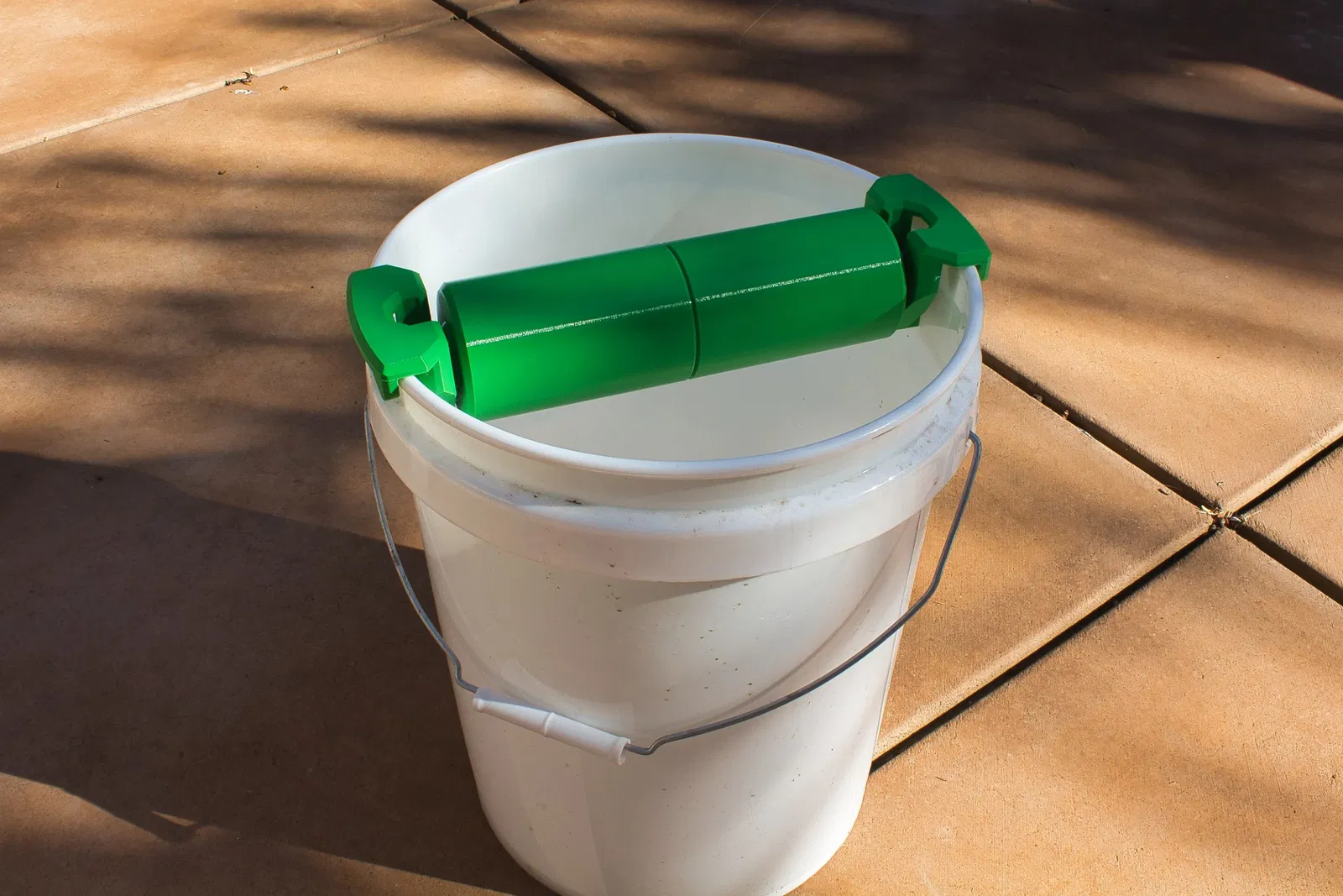 Đây là một thanh lăn treo trên một cái xô. Đây là một phương pháp đã được kiểm chứng để bắt chuột. Đặt bơ đậu phộng xung quanh giữa và những người bạn lông xù của bạn sẽ đi ra để nhận phần thưởng. Nếu nó lăn quá mượt, hãy vo một mảnh giấy nhỏ bên cạnh một trong các vòng bi. Bạn muốn chúng nghĩ rằng nó an toàn ít nhất cho đến khi chúng đến giữa. Bạn có thể sử dụng nước ở đáy hoặc một lớp lót mềm bằng bông. Tùy thuộc vào bạn. Hãy cho chúng một cái ramp hoặc một loại đường dẫn nào đó để hướng dẫn chúng đến bữa ăn của chúng (sự diệt vong). Lưu ý: các phần màu xanh nhạt hơn được hiển thị trong một vài bức ảnh là V1, và chỉ được hiển thị vì tôi không muốn xóa bức ảnh.