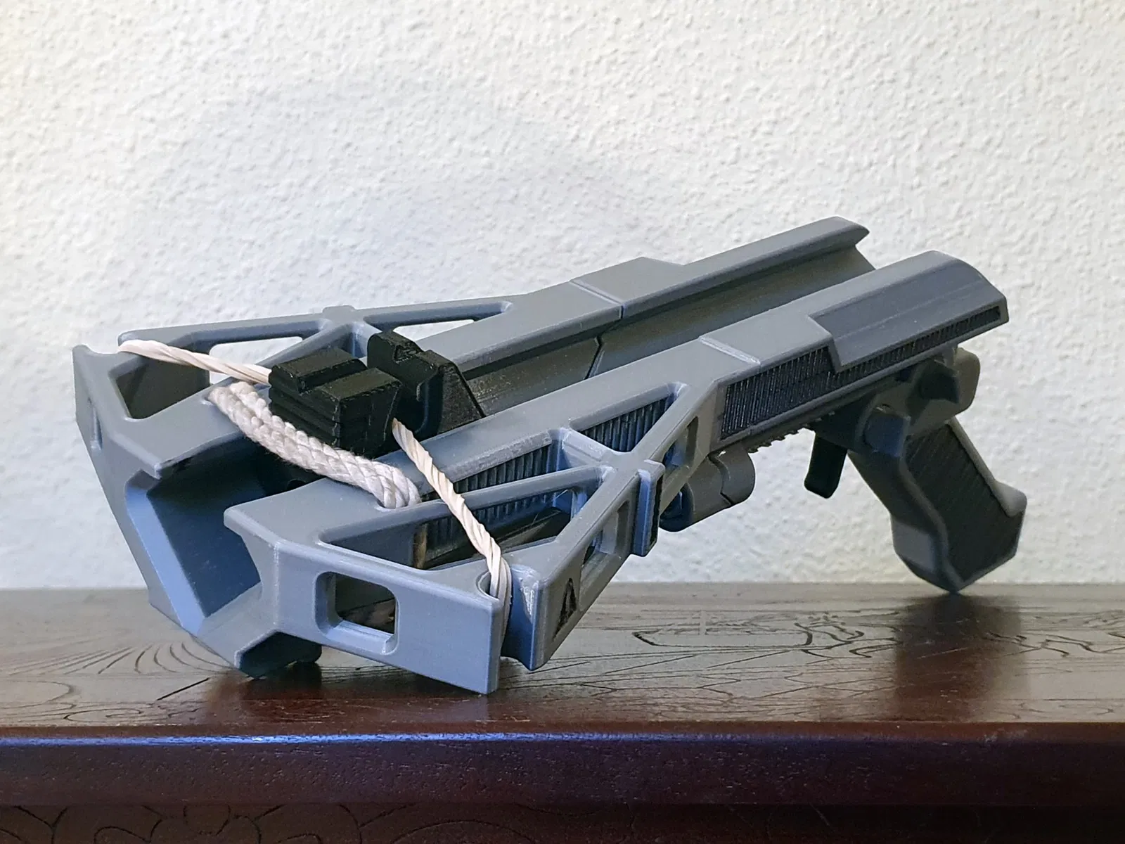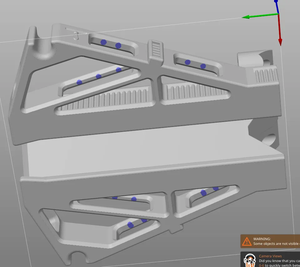 !!!VUI LÒNG ĐEO BẢO VỆ!!! KHÔNG PHẢI LÀ ĐỒ CHƠI!!! TÔI KHÔNG THỂ ĐẢM BẢO TẤT CẢ CÁC LOẠI VẬT LIỆU HAY ĐỘ ĐÀN HỒI MẠNH MÀ BẠN SẼ SỬ DỤNG. CÁC MẢNH NHỰA SẮC NHỌN BAY VÀO MẶT BẠN VỚI TỐC ĐỘ MACH 3 KHÔNG PHẢI LÀ VUI VẺ! BẢO VỆ BẢN THÂN BẠN!!! Demonstration: (Bố trí yếu, chỉ sử dụng một vài dây cao su nhỏ cấp văn phòng) Muốn tạo ra một cái hoàn toàn đối lập với mẫu cũ của tôi, Máy Ném Giấu Kín: <> Cái này - ít giấu kín hơn nhưng MẠNH MẼ HƠN NHIỀU. Mạnh mẽ như độ đàn hồi bạn sẽ sử dụng, và an toàn như lương tri của bạn, vật liệu in và số lượng viền/đổ đầy. -Tất cả các mẫu đã ở vị trí in đúng. Không cần xoay. -Có bảng tên để bạn có thể viết một cái gì đó tùy chỉnh trên chúng trong slicer và sau đó dán vào các khe nghiêng ở hai bên. -Ray Picatinny và Dovetail ở dưới cùng để gắn laser/đèn pin. -Có đai ốc và bu lông đi kèm! Nhưng cho kết nối trước/sau, tôi khuyên bạn nên lấy một cặp M8x30mm "thật". Hoặc chỉ cần dán hai phần lại với nhau. Hoặc cả hai. Không cần thay thế các bu lông cầm vì chúng không chịu lực kéo dọc và các kích thước có thể hơi sai vì các mẫu in của tôi không chính xác với bất kỳ số liệu thực nào. Vì vậy, cơ chế có thể thất bại, chưa thử nghiệm. -Vặn và tháo các ren vài lần và làm sạch chúng thật tốt. Các bu lông của tôi được thu nhỏ xuống 90% kích thước ban đầu trên trục X/Y, hoạt động hoàn hảo với Prusa Mini+ của tôi. Sử dụng phán đoán của riêng bạn và thu nhỏ thêm nếu cần. -Hỗ trợ: Như được hiển thị trong các bức ảnh được đánh dấu bằng màu xanh. Không cần ở bất kỳ đâu khác hoặc sử dụng phán đoán của riêng bạn. -Viền và Đổ đầy: Tôi đã sử dụng 4 viền và 60% đổ đầy khối thích ứng với mọi thứ khác là cài đặt chất lượng mặc định 0.2mm. Sử dụng phán đoán của riêng bạn. Nên rất mạnh mẽ ở các cài đặt này, nhưng luôn an toàn và cẩn thận! -Kích thước: Phần lớn nhất chỉ dưới 175mm. Sẽ vừa vặn hoàn hảo trên một Prusa Mini với phần viền được bật. Tôi đã in cái này trên Mini+. -Độ bền: Tôi khuyên bạn nên buộc một cái gì đó chắc chắn quanh cuối nòng để không để cho bu lông va vào điểm dừng (như đã chỉ ra). Tùy thuộc vào độ đàn hồi và chất lượng in của bạn, nó có thể bị gãy hoặc không. Tốt hơn là nên cẩn thận.