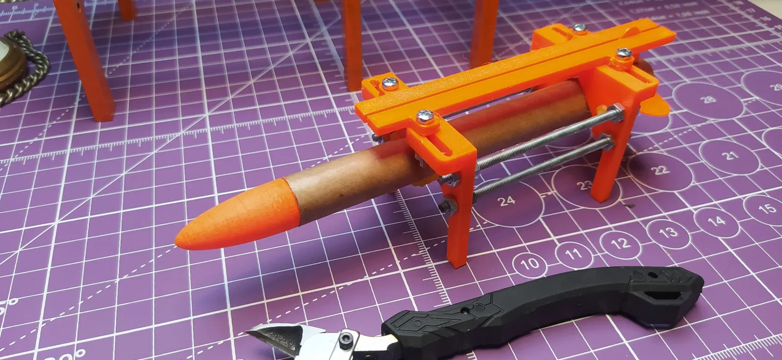Một công cụ nhỏ để lắp vây hoàn hảo trên các tên lửa mô hình có đường kính khác nhau.
