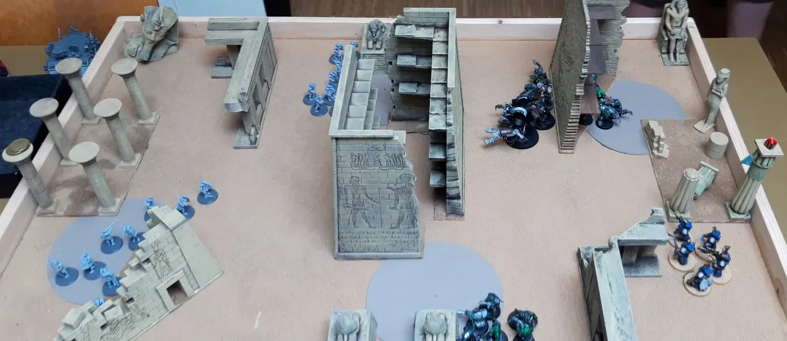 Đầu Pharaoh: chỉ cần cắt bằng boolean để trông như một bức tượng khổng lồ bị chôn vùi trong cát. Cột Papyrus: