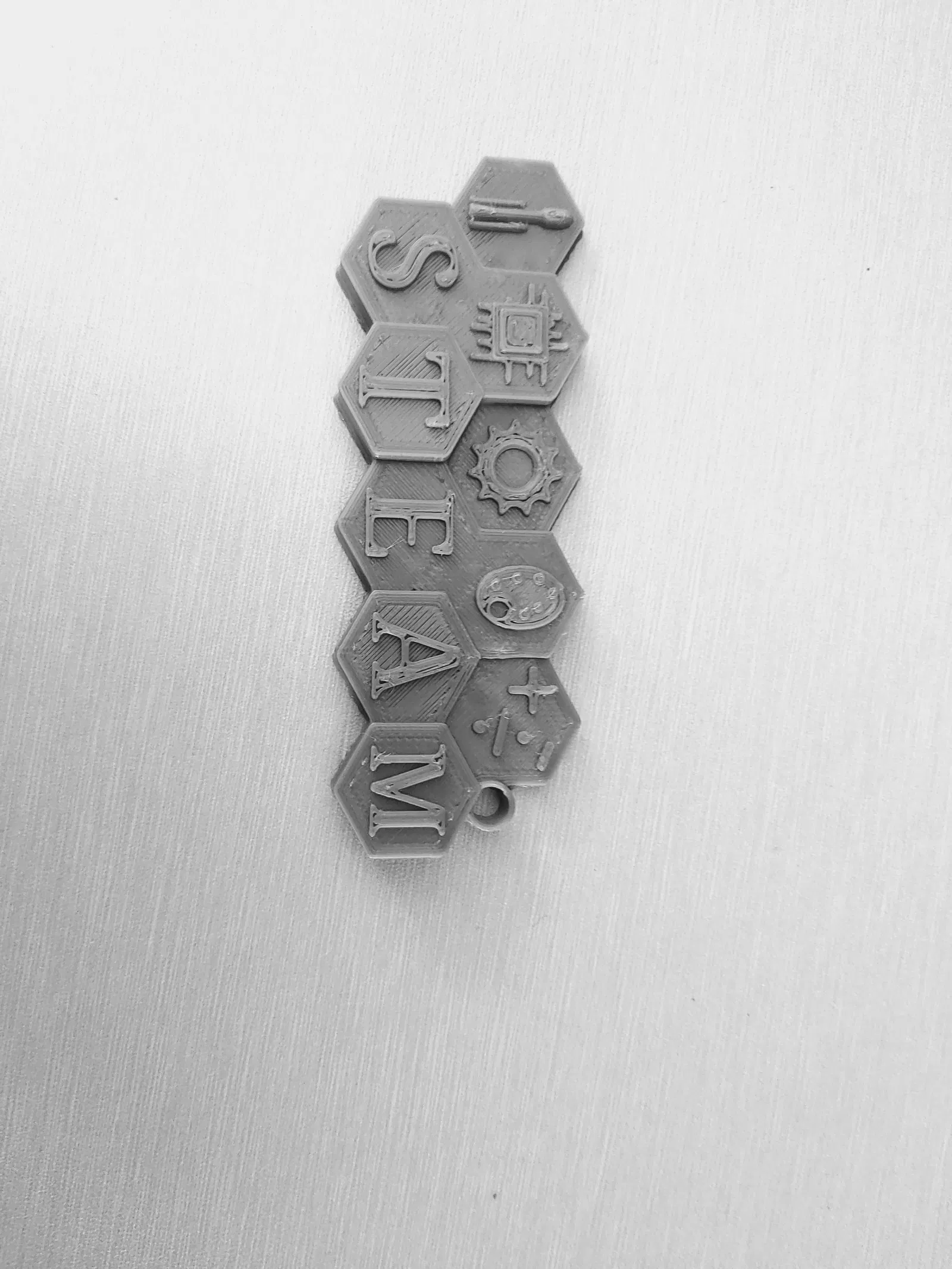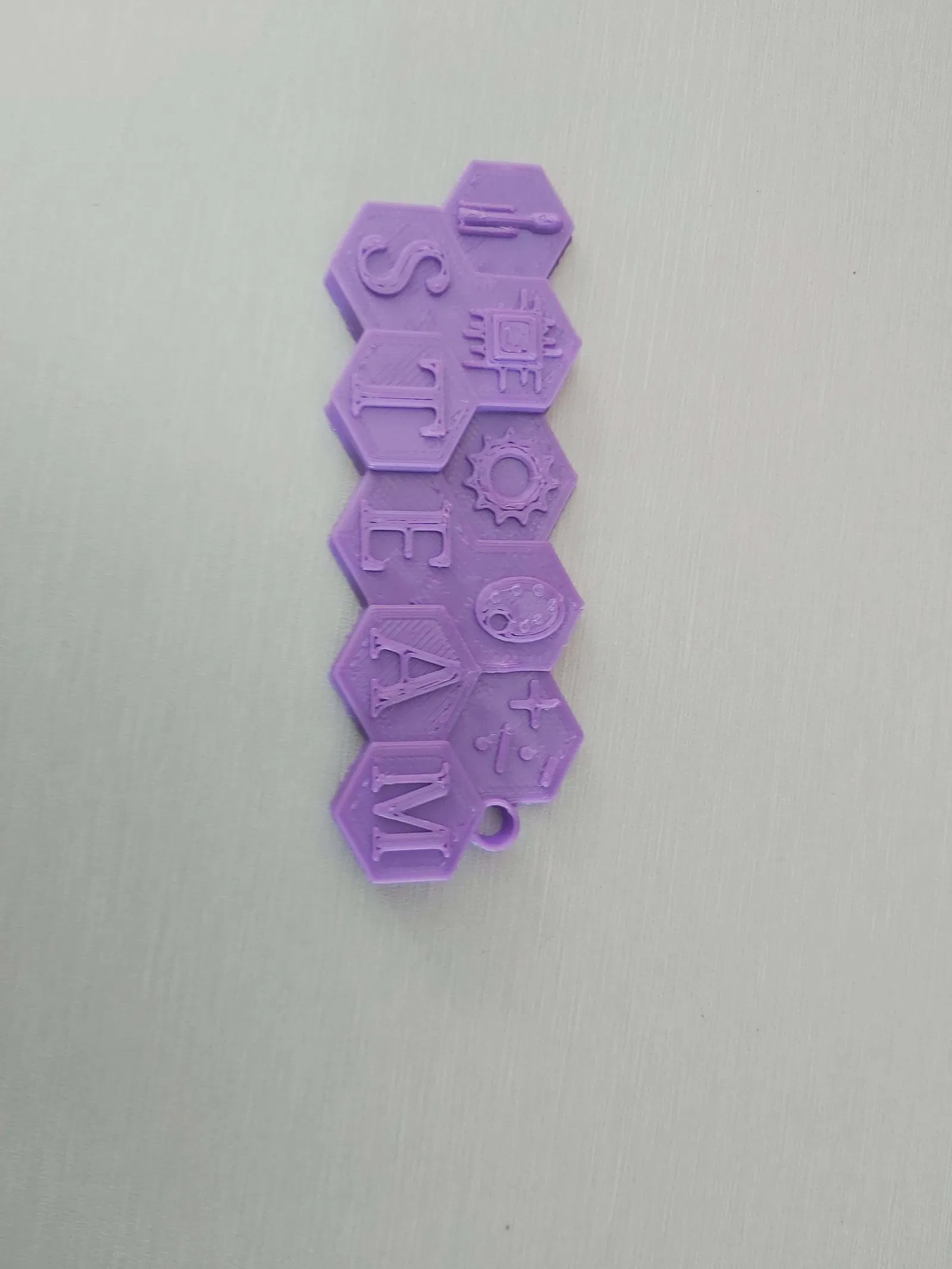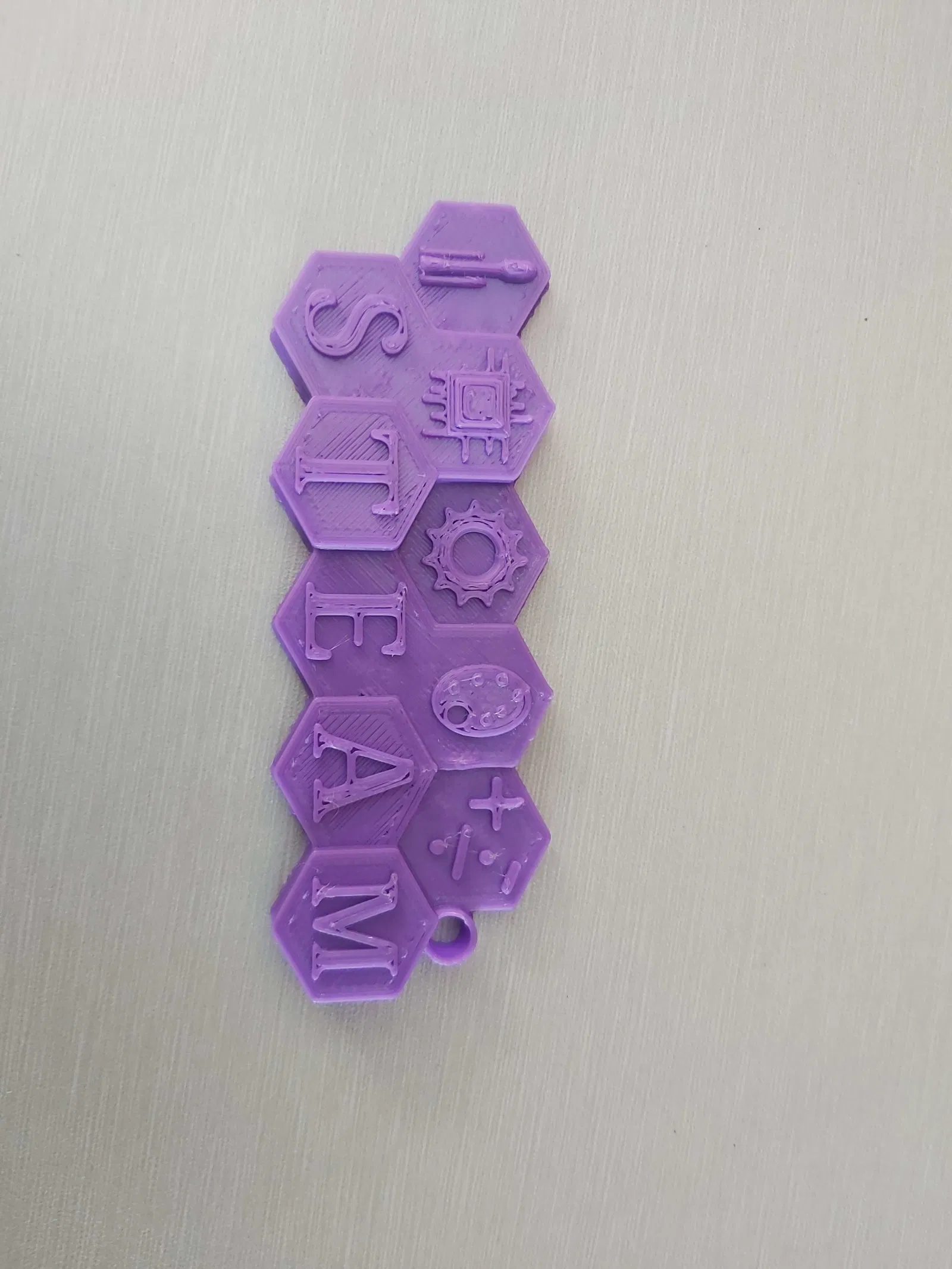 Móc khóa đại diện cho từ viết tắt STEAM. Chất lượng in của tui không được tốt lắm nên có vài lỗi, nhưng mọi người yên tâm là do máy in chứ không phải do mẫu.
