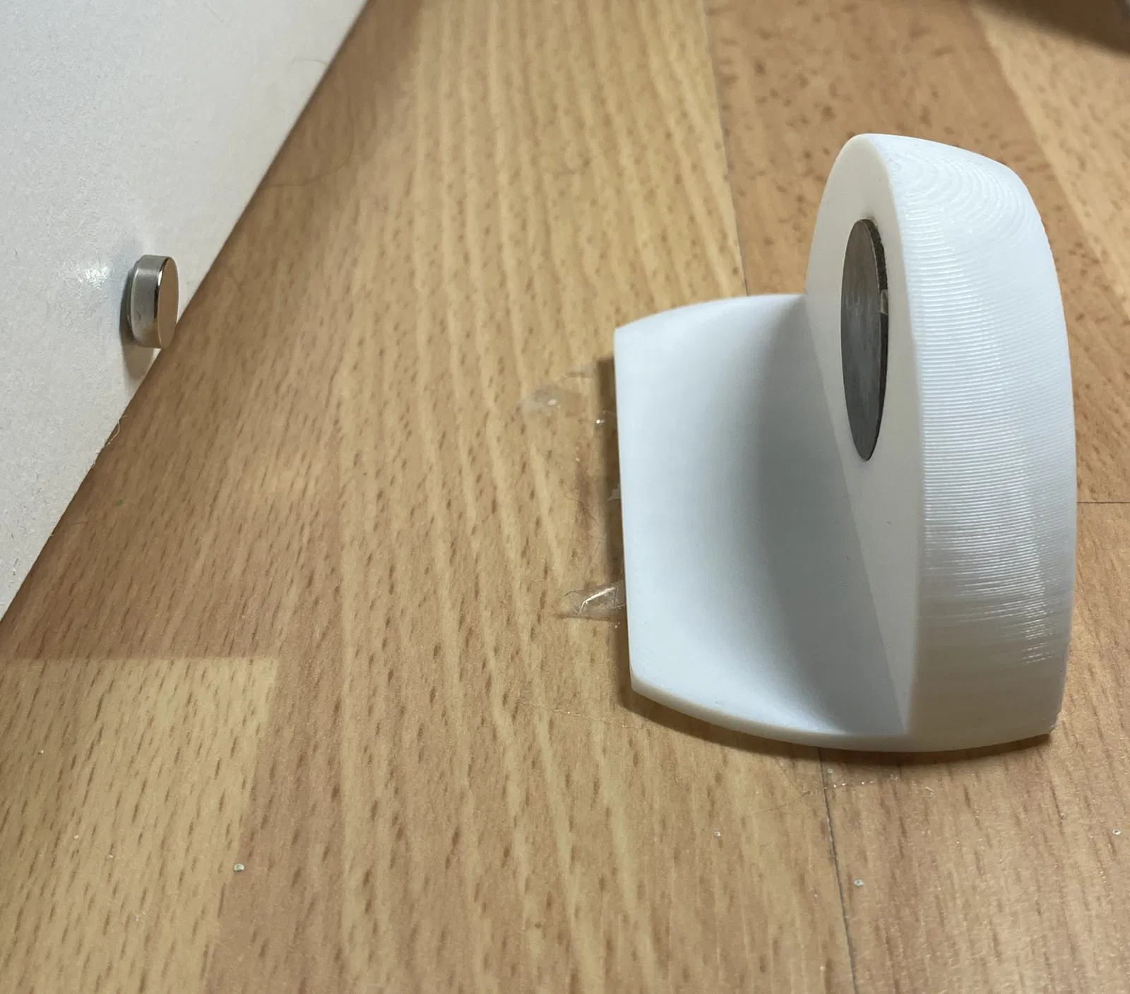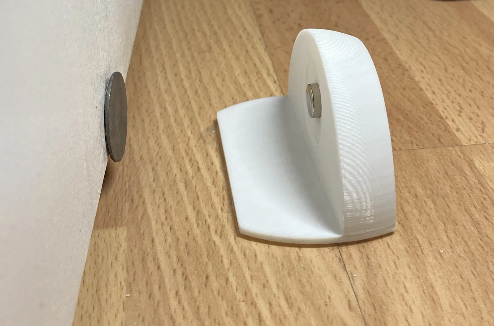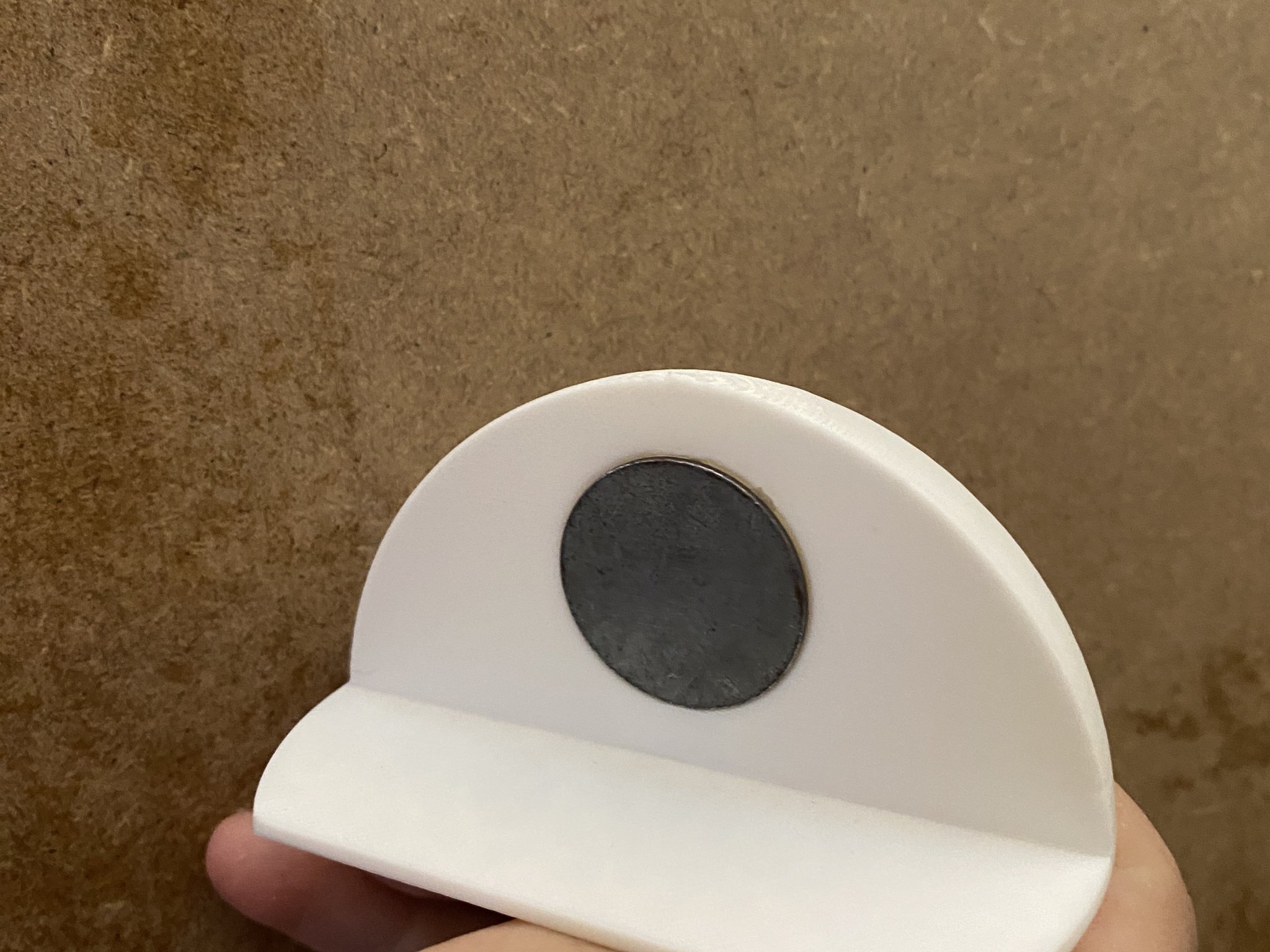 Cái chặn cửa này giữ cửa của bạn mở với sự trợ giúp của nam châm. Một nam châm có đường kính 10mm và độ dày 3mm có thể được sử dụng. Nó cũng có thể được sử dụng với một đĩa kim loại 25mm có đường kính và 1.5mm dày. Một nam châm hoặc đĩa kim loại sau đó có thể được dán vào cửa. Nam châm/đĩa kim loại tốt nhất được gắn vào chặn cửa bằng keo dán siêu mạnh. Tổng chiều dài của chặn cửa là 80mm, 40mm dày và 40mm cao.