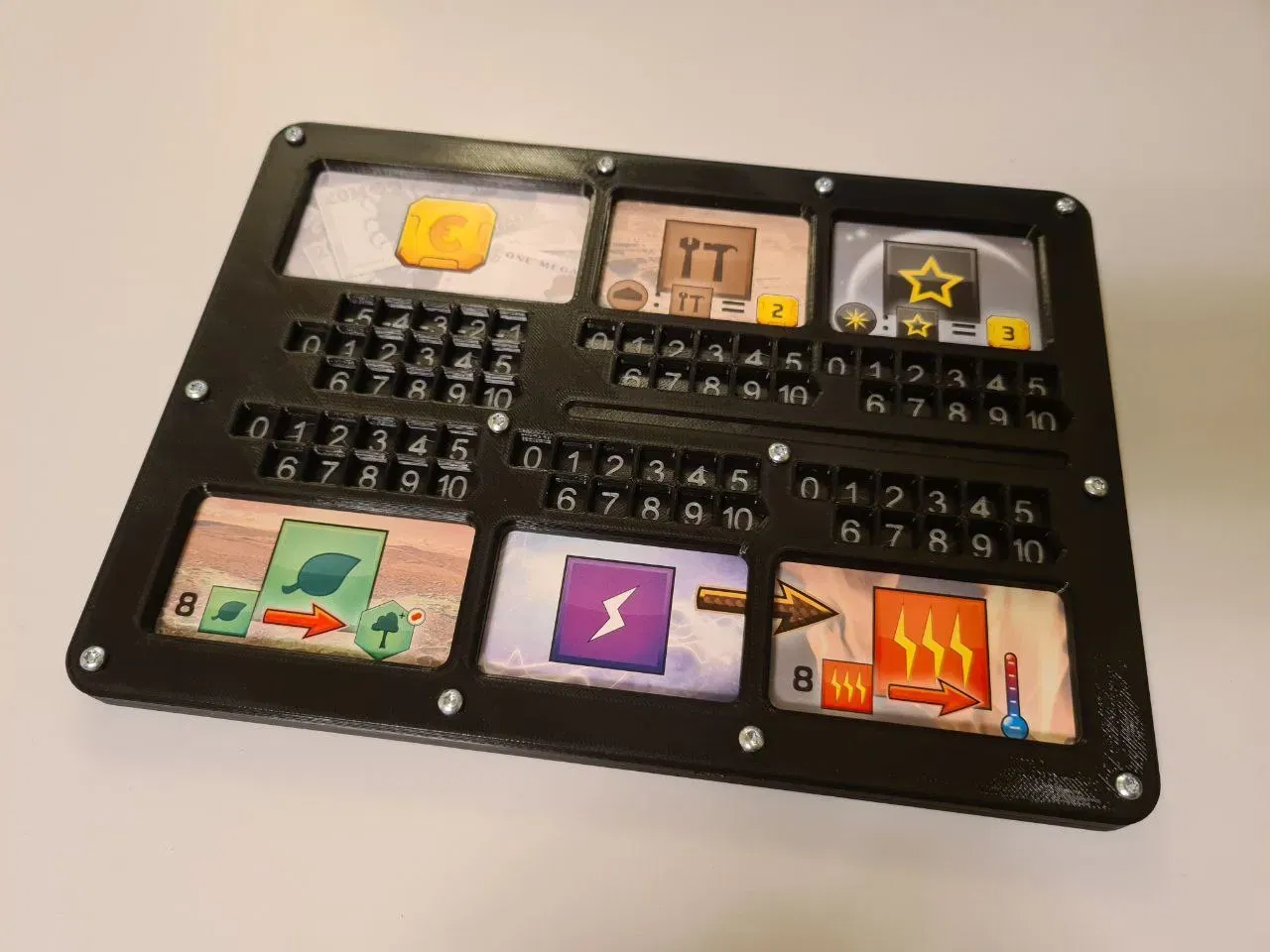 Thiết kế này nhằm nâng cấp các thẻ cardboard trong trò chơi Terraforming Mars của bạn. Mô hình được thiết kế đặc biệt theo phong cách của trò chơi để phù hợp hoàn hảo với trò chơi hiện tại của bạn. Bạn cần thêm các bộ phận: