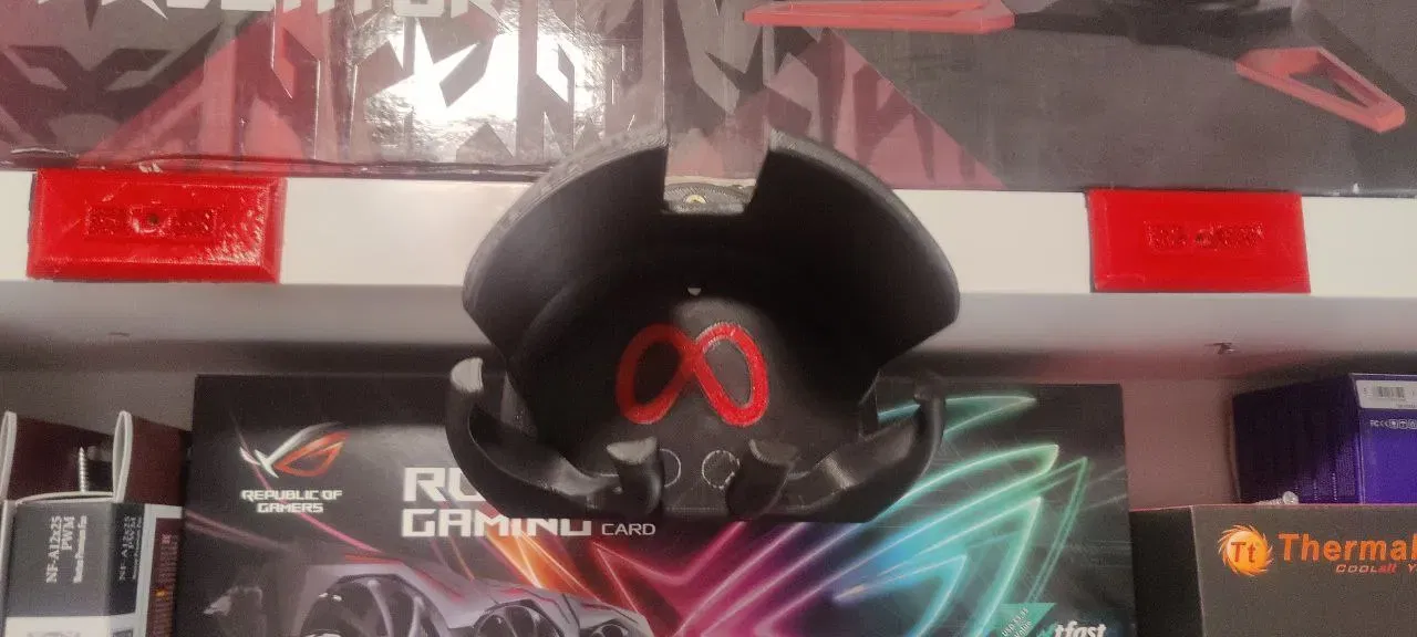 Đây là một bản remix của một số thiết kế tuyệt vời bởi người dùng Bengyboo Giá treo tường cho Meta Quest 3 và điều khiển. Nên sử dụng ít nhất một con vít trong việc neo chặt + băng dính hai mặt hoặc hai con vít. CẢNH BÁO Hãy cẩn thận khi đưa vào và lấy ra Meta Quest 3 khi các điều khiển đang ở trên giá treo. Các điều khiển có thể bị kéo bởi dây đeo đầu hoặc các phần của dây đeo đầu.
