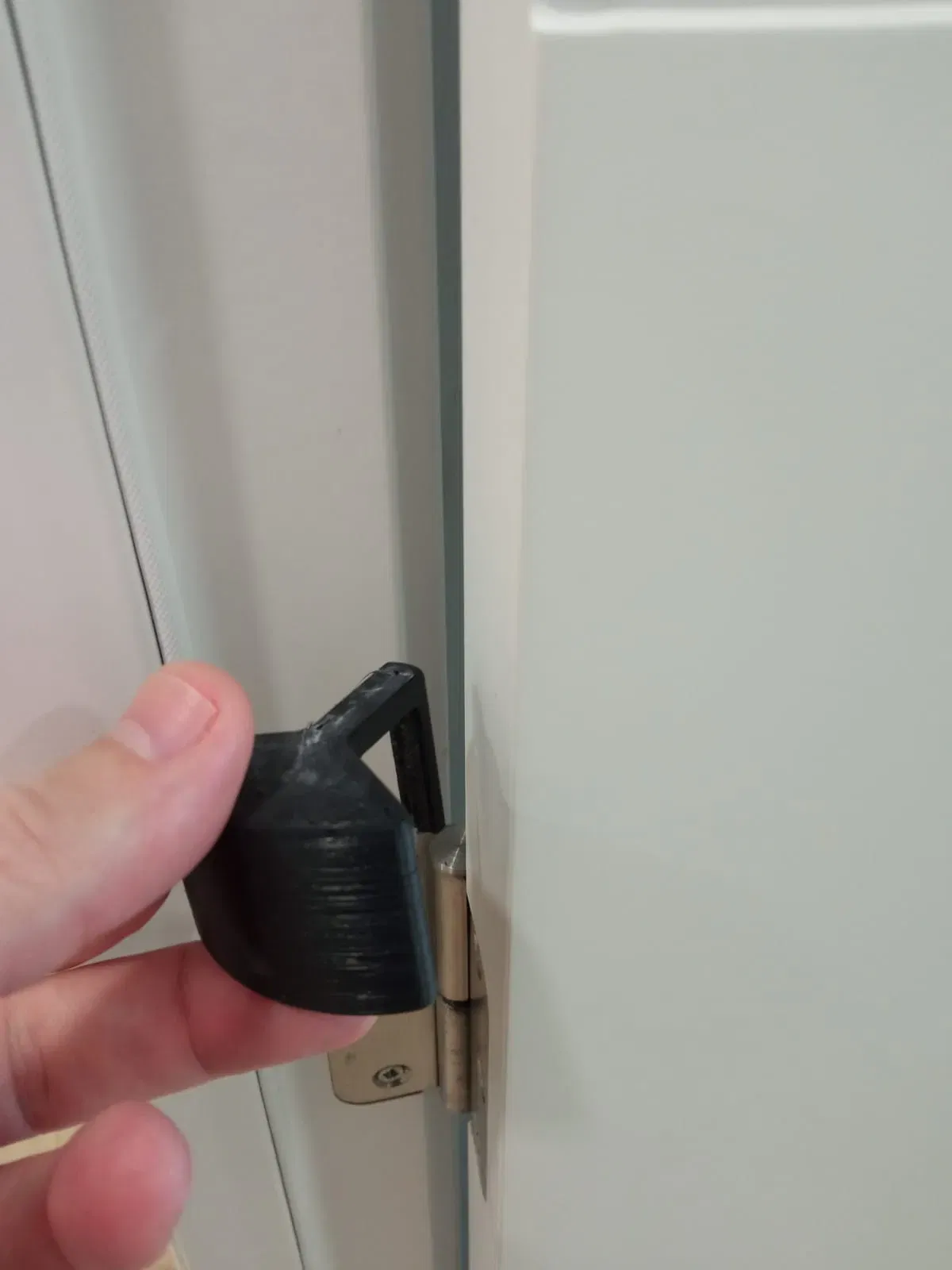 Tôi không thích các miếng chêm ở nhà vì chúng có thể làm hỏng cửa và sàn nhà. Hơn nữa, bạn có thể vấp phải chúng. Đó là lý do tại sao tôi thiết kế mô hình này treo từ bản lề.