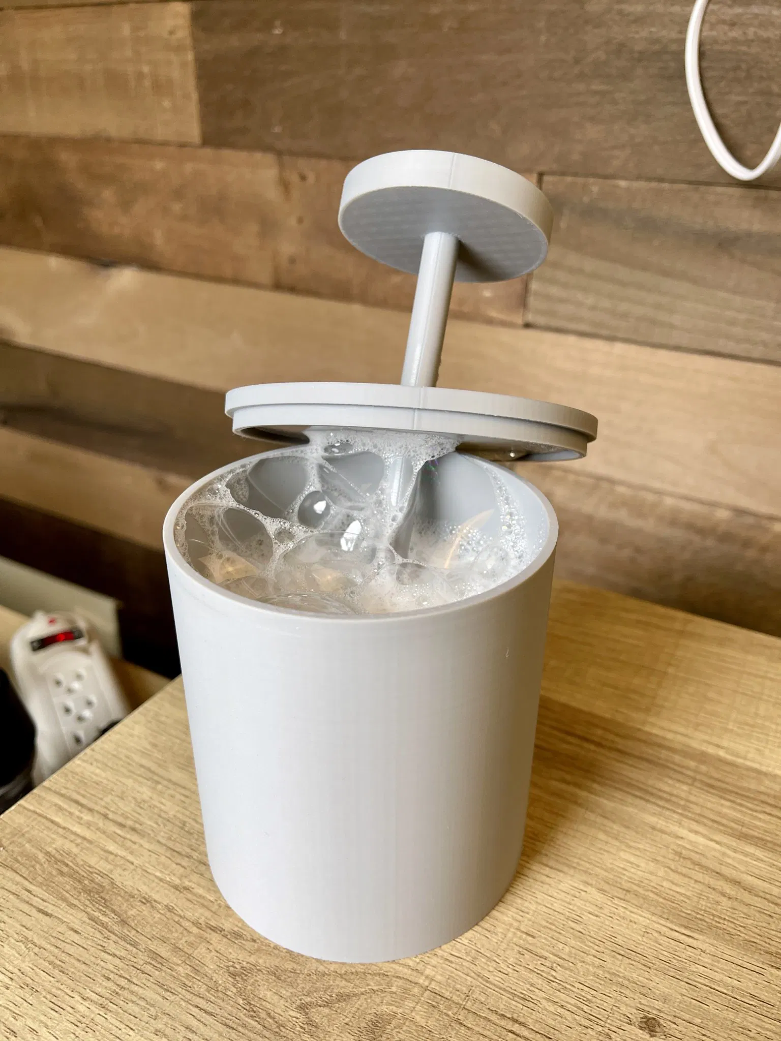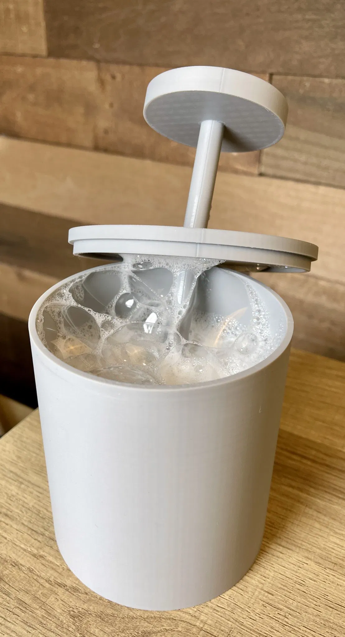 Một chiếc cốc được sử dụng để làm bong bóng bọt