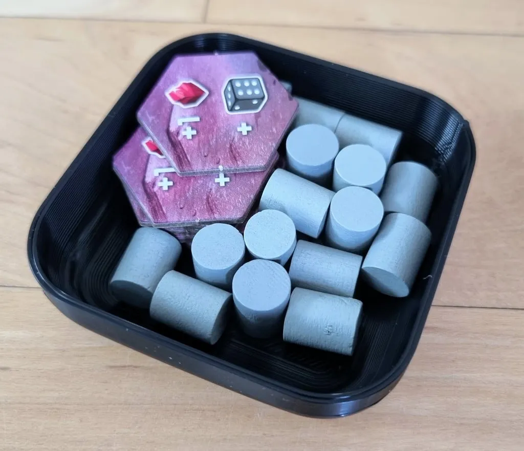 Vì vậy, chỉ cần di chuyển các máy thu hoạch và xúc xắc vào 4 hộp có nắp, in 4 hộp theo thiết kế của tôi, và có một trải nghiệm chơi game tốt hơn nữa.