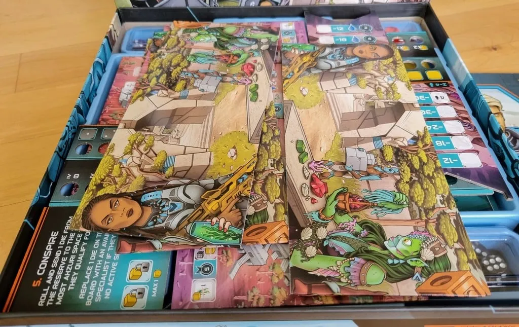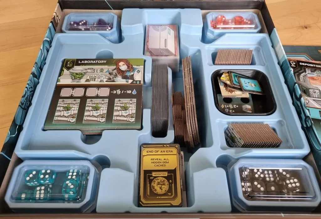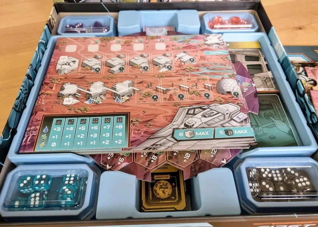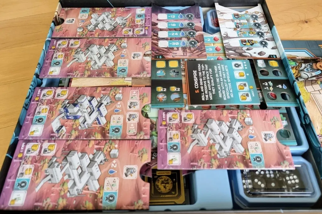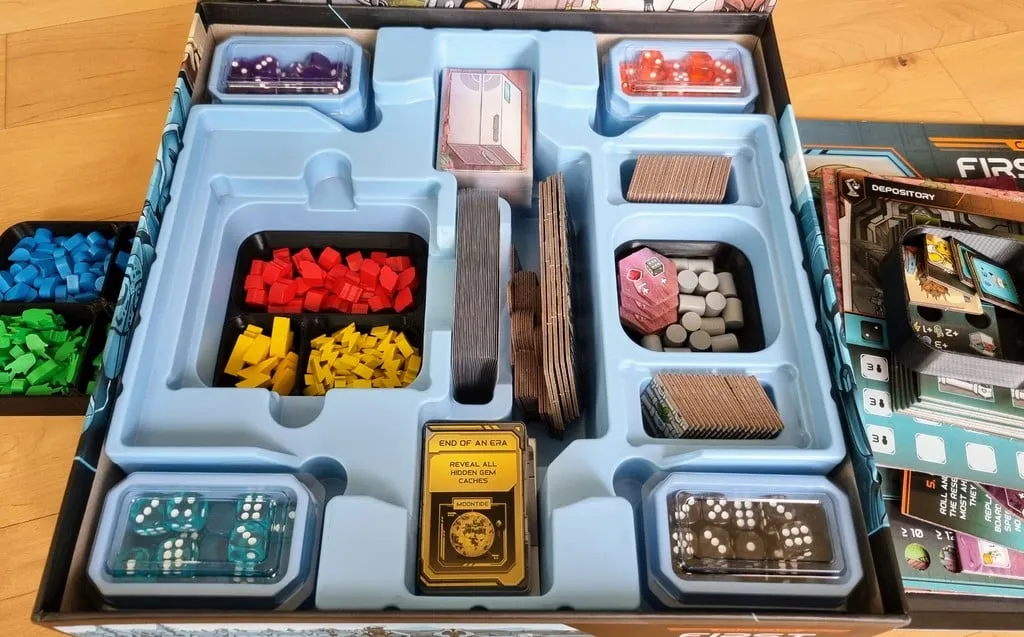Mặc dù tôi thường thích phần chèn đi kèm với trò chơi nhưng nó có một số vấn đề như các hộp tài nguyên quá nhỏ và thực tế là tất cả các viên xúc xắc đều bị ném vào một hộp lớn.