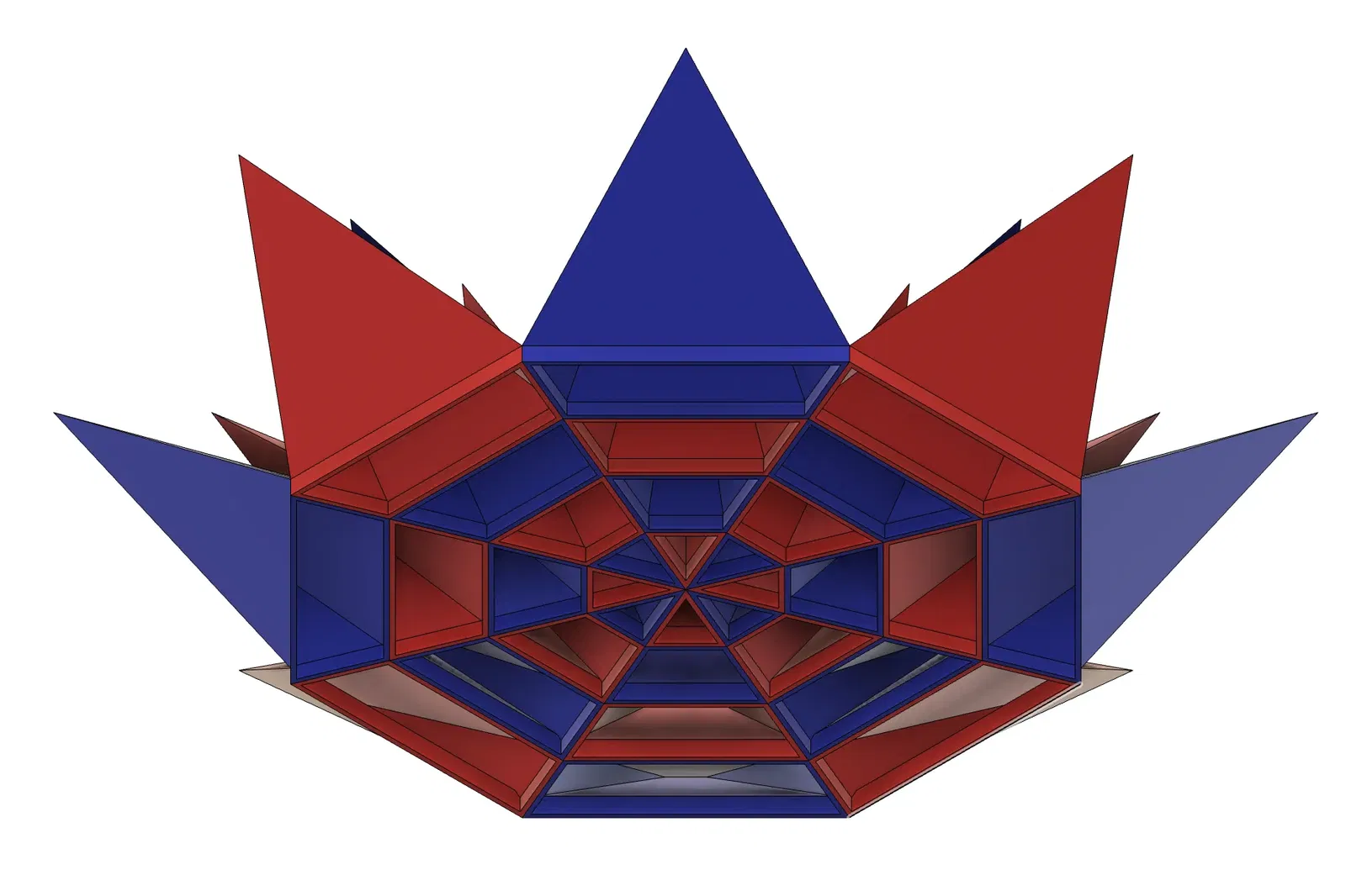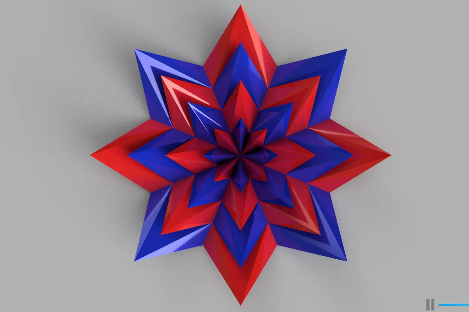 Tôi đã tạo ra mô hình này bằng cách sử dụng Fusion 360 và hiện tại đang in mô hình trên một máy in Bambu lab X1 carbon. Thiết kế là một ngôi sao lục giác đơn giản gồm 4 lớp. 8 đoạn cho mỗi vòng, tổng cộng 32 đoạn.