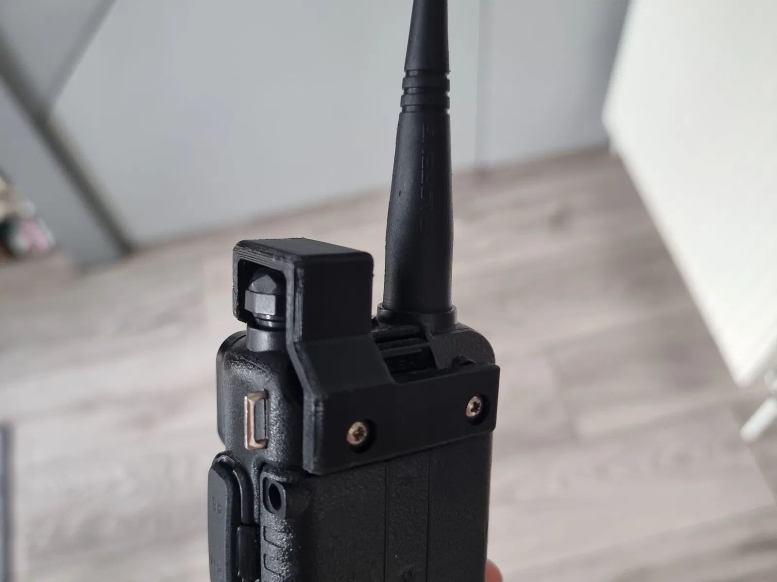 Bìa âm lượng cho Baofeng UV-5R sử dụng giá gắn phía sau và các vít đi kèm với radio.