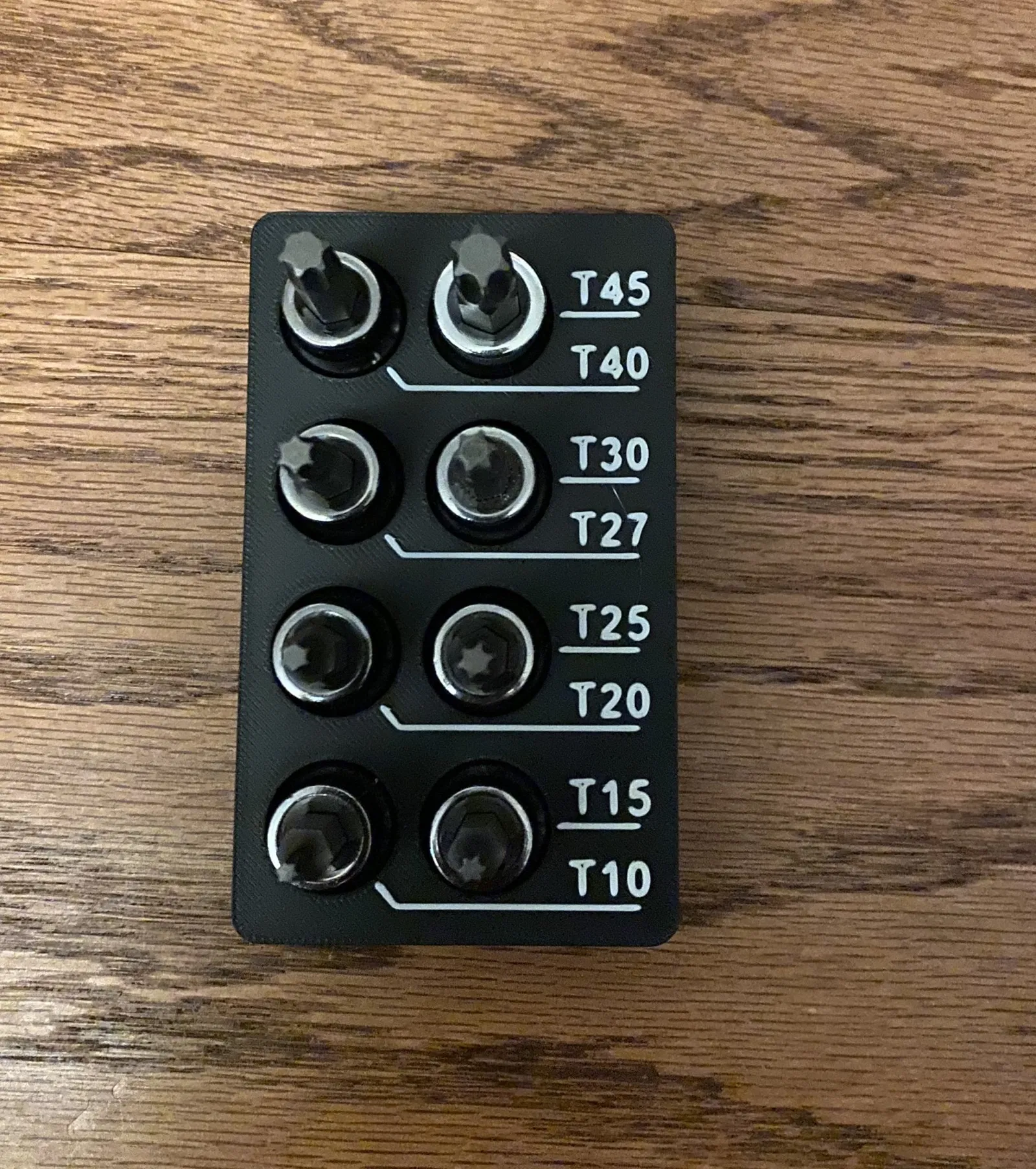 Tổ chức Gridfinity cho 4 bộ khác nhau của các bit torx 3/8" drive