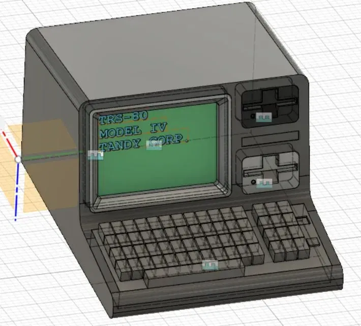 Mô hình mô-đun của Radioshack/Tandy TRS-80 Model IV. In các bộ phận riêng biệt bằng các màu khác nhau.