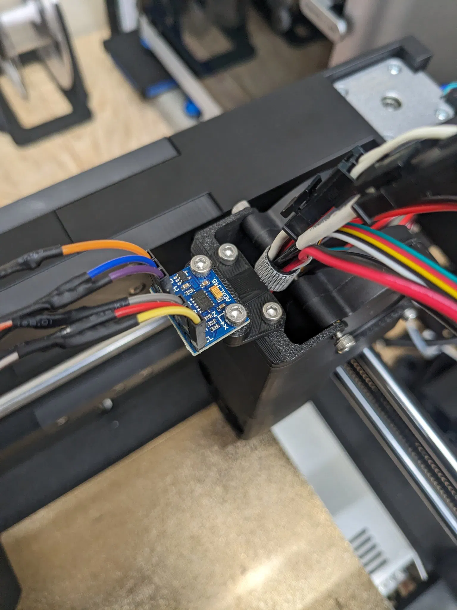 Cái ống dẫn quạt đầu công cụ có các lỗ gắn để gắn Fystec PIS (hình dạng đầu vào di động). Tôi đã có một ADXL345 được hàn và nối dây cho một máy in khác và không muốn chi khoảng 20 đô la trên Amazon cho một cái mà, theo như tôi thấy, thực hiện cùng một chức năng. Bộ chuyển đổi này cho phép bạn sử dụng một ADXL345 (cụ thể, loại được hiển thị trong hình) cho đầu công cụ.