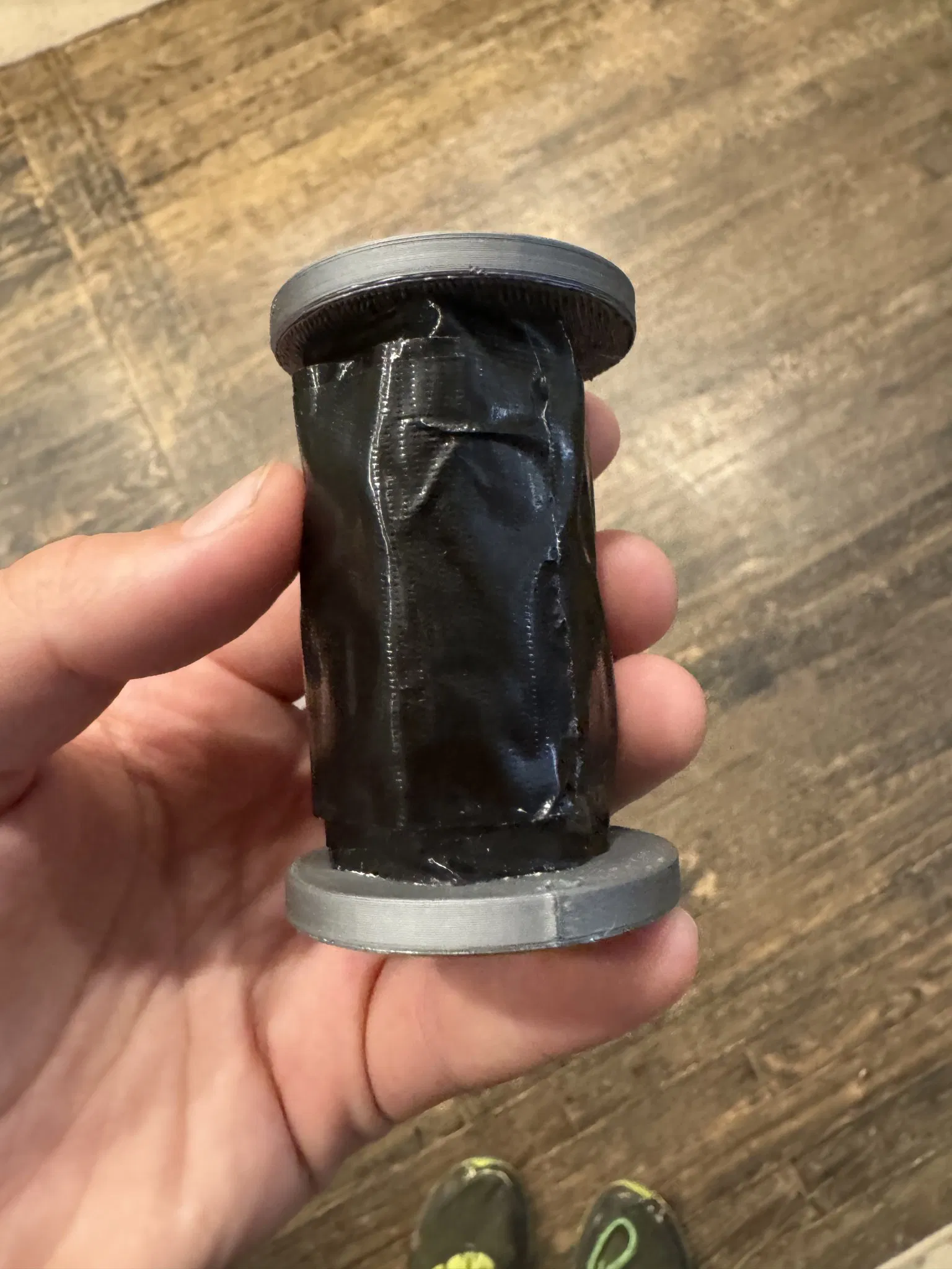 Một người giữ cầm tay để mang một lượng băng keo kha khá. Yêu cầu hỗ trợ.
