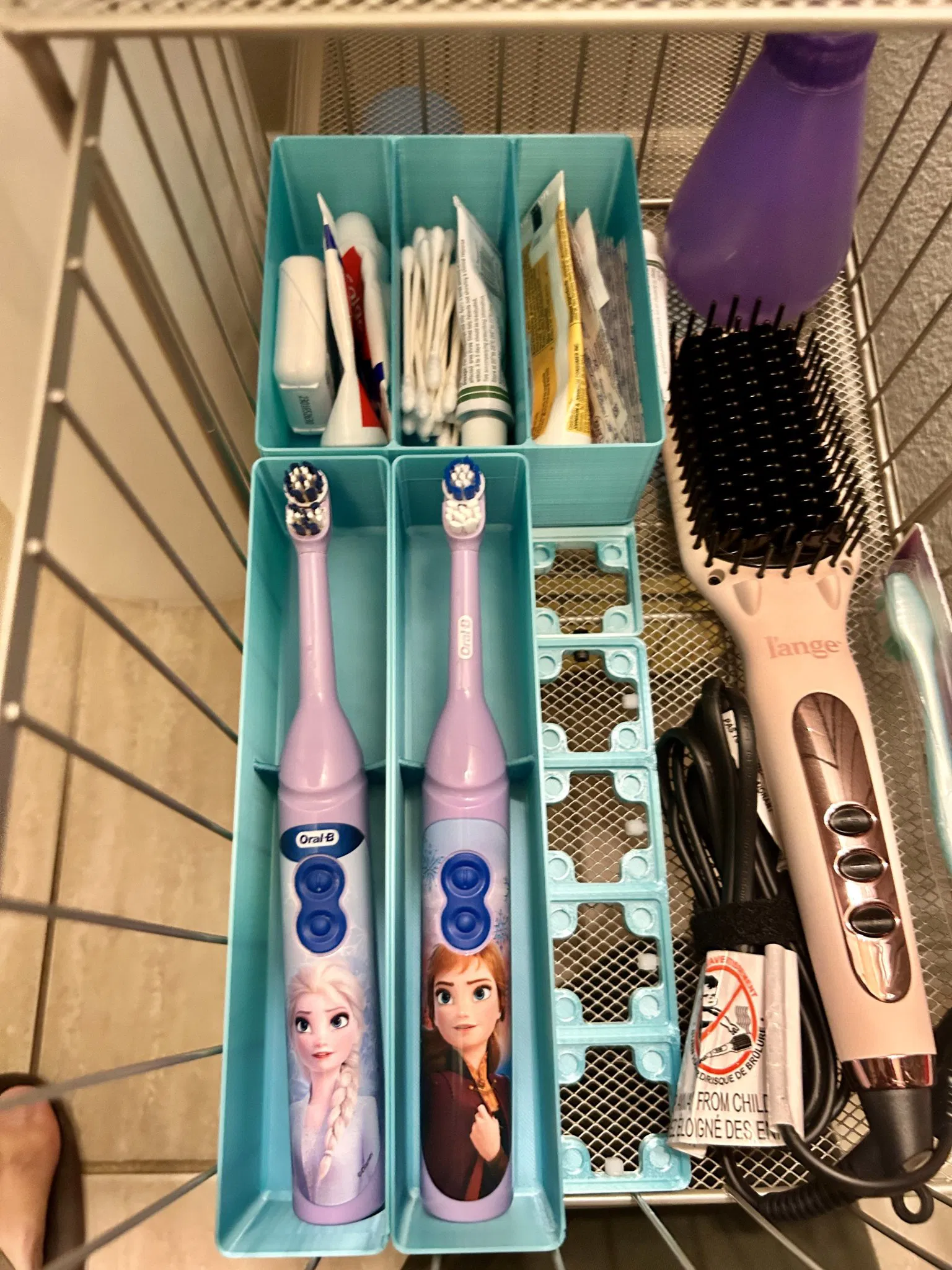 Vợ tôi đã yêu cầu tôi giúp tổ chức ngăn kéo phòng tắm bột mà cô ấy đã mua. Chúng tôi giữ bàn chải đánh răng của bọn trẻ ở đó, nhưng chúng bay lung tung. Tôi đã tạo ra cái này đủ chung chung để nếu chúng tôi thay đổi kiểu mẫu, nó vẫn sẽ phục vụ mục đích.