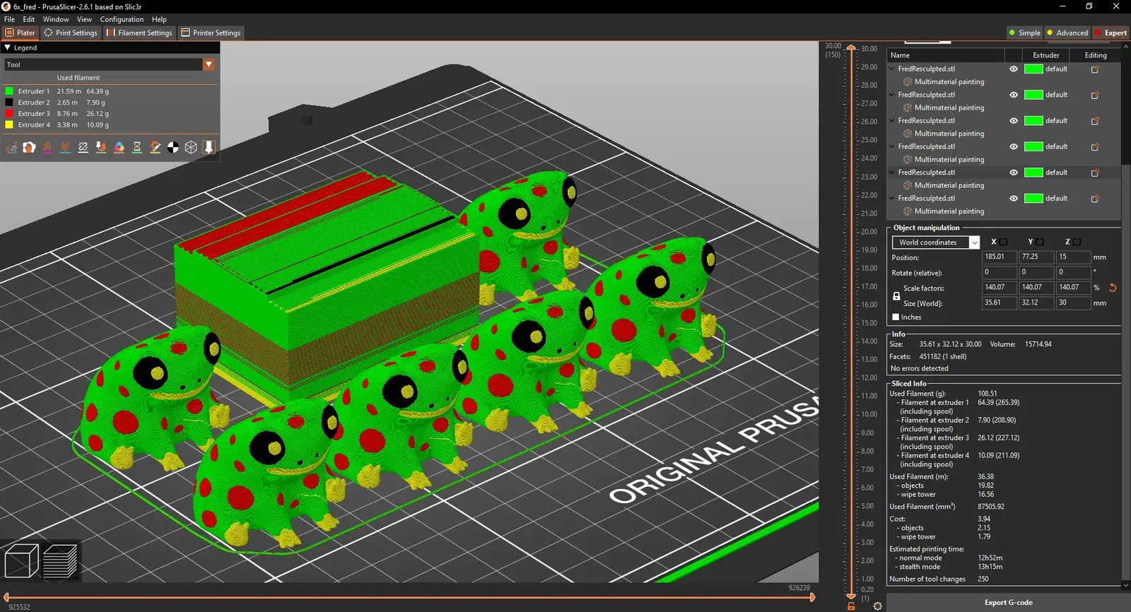 Một phiên bản ếch cây độc màu sắc của Fred trong một mẫu đa sắc bốn màu. In nhiều cái cùng một lúc để giảm thời gian cho mỗi mẫu.
