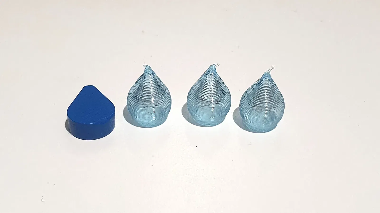Giọt nước được thiết kế bởi JMPlus (https://www.thingiverse.com/thing:3819024), in ở chế độ bình với filament Fillamentum PLA Crystal Clear Iceland Blue.