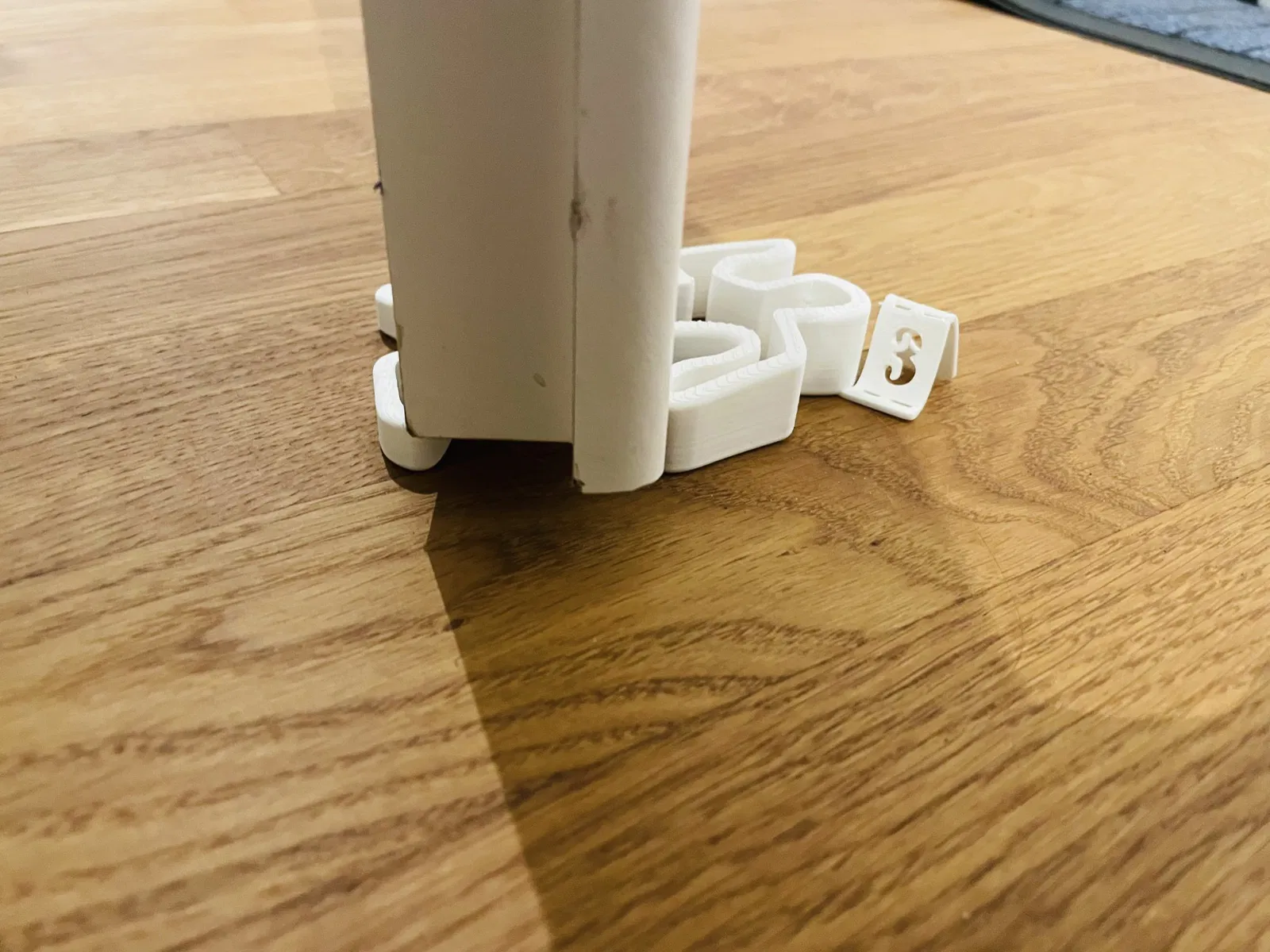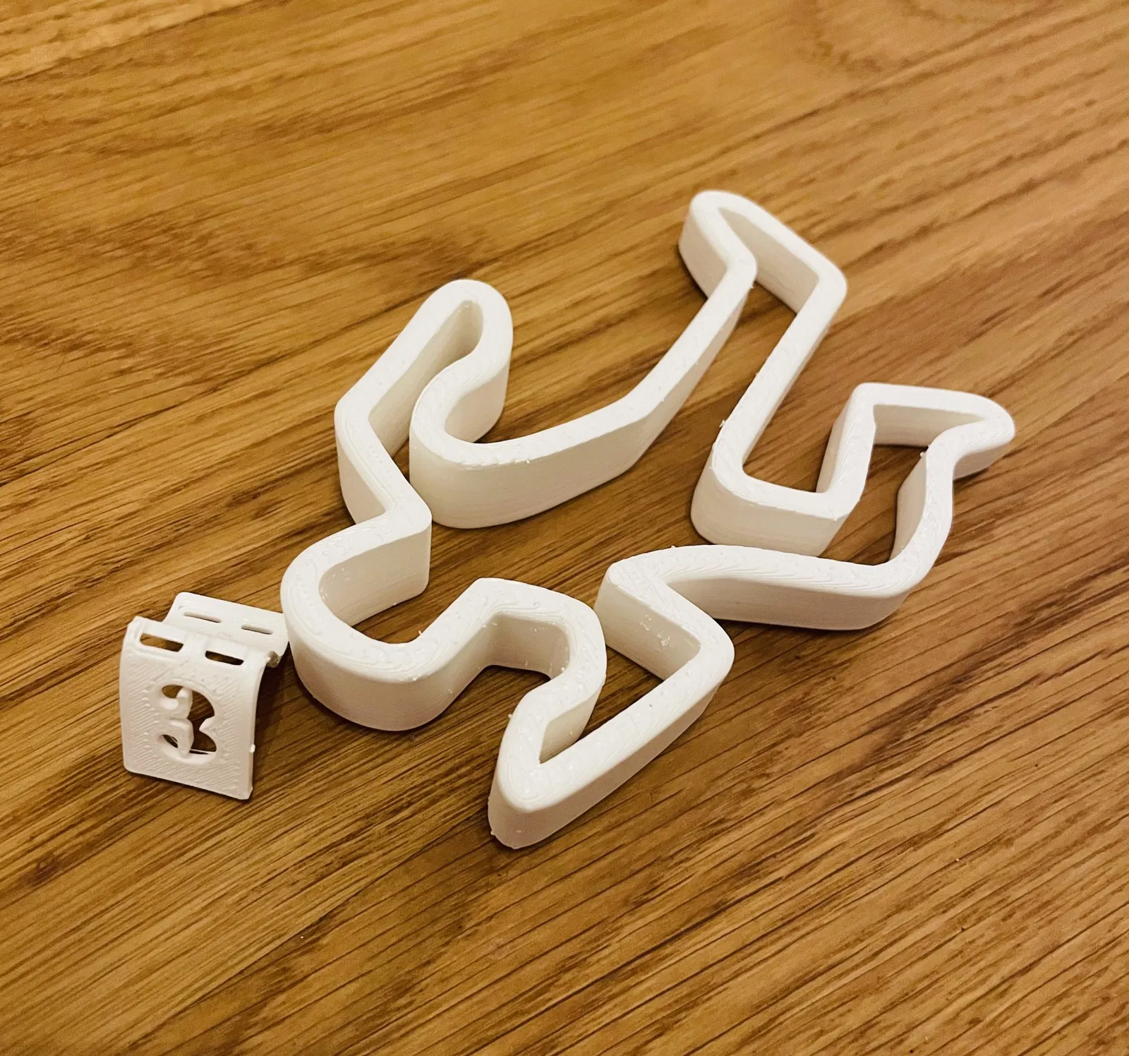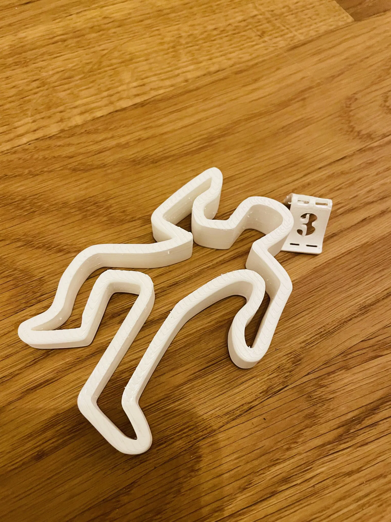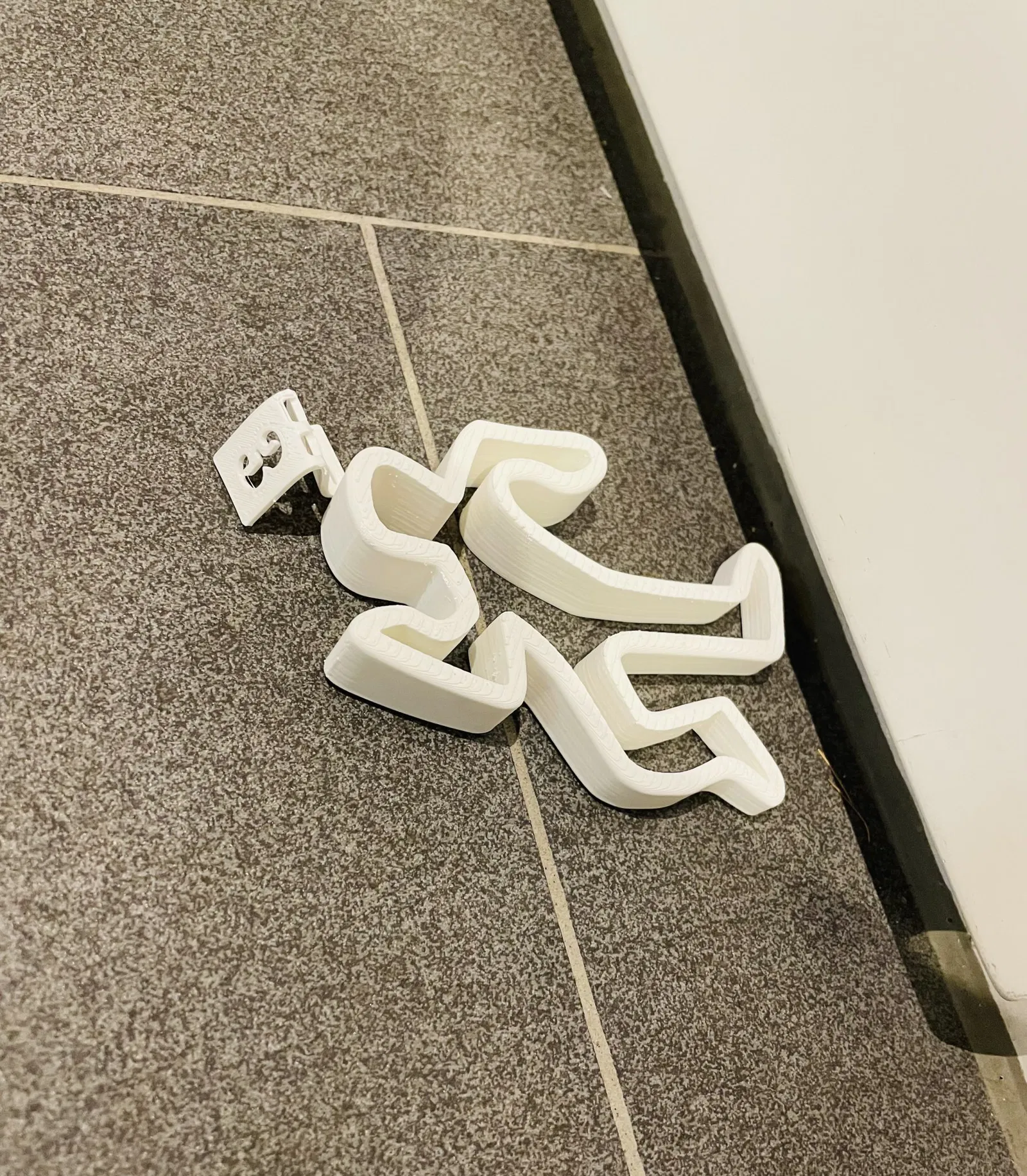 Cooler cửa chặn cửa làm từ PETG trắng. 100% độ đặc. Không cần giá đỡ. Đặt phần này lên bề mặt nóng (80°) của bàn gia nhiệt sau khi in và sau một thời gian ngắn, uốn nhãn hiệu FBI “3” lên và xuống. (xem hình)