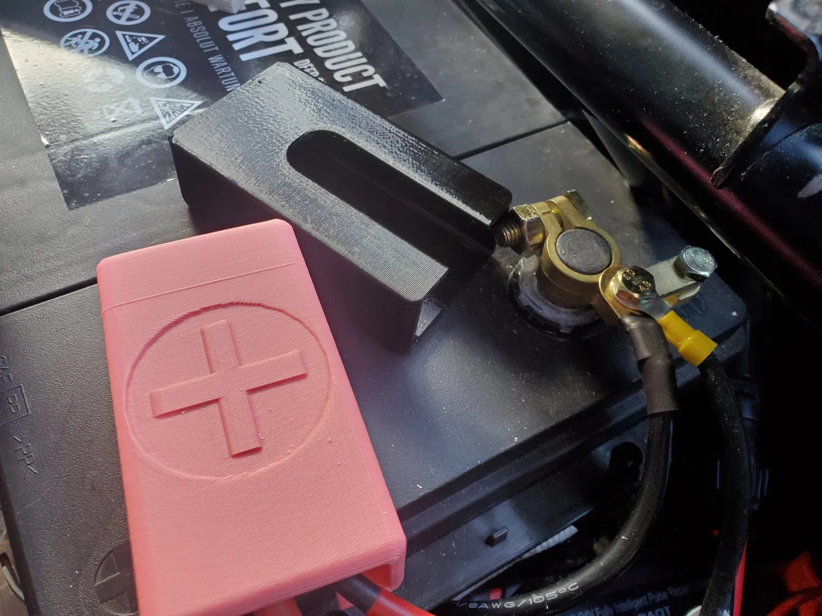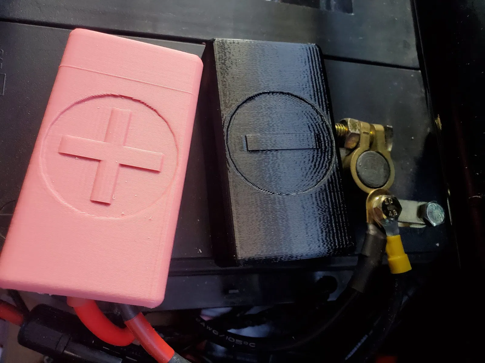 Vỏ đầu cuối với các dấu hiệu tích cực và tiêu cực để cô lập các thiết bị đầu cuối pin của A, ví dụ: Pin xe 12V