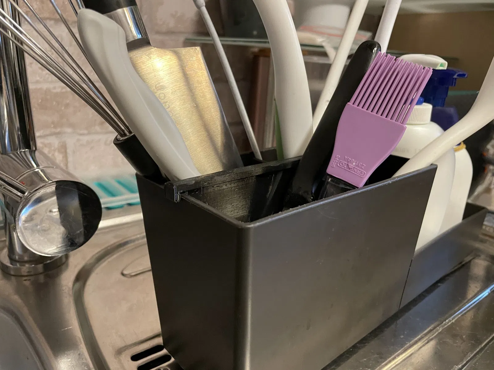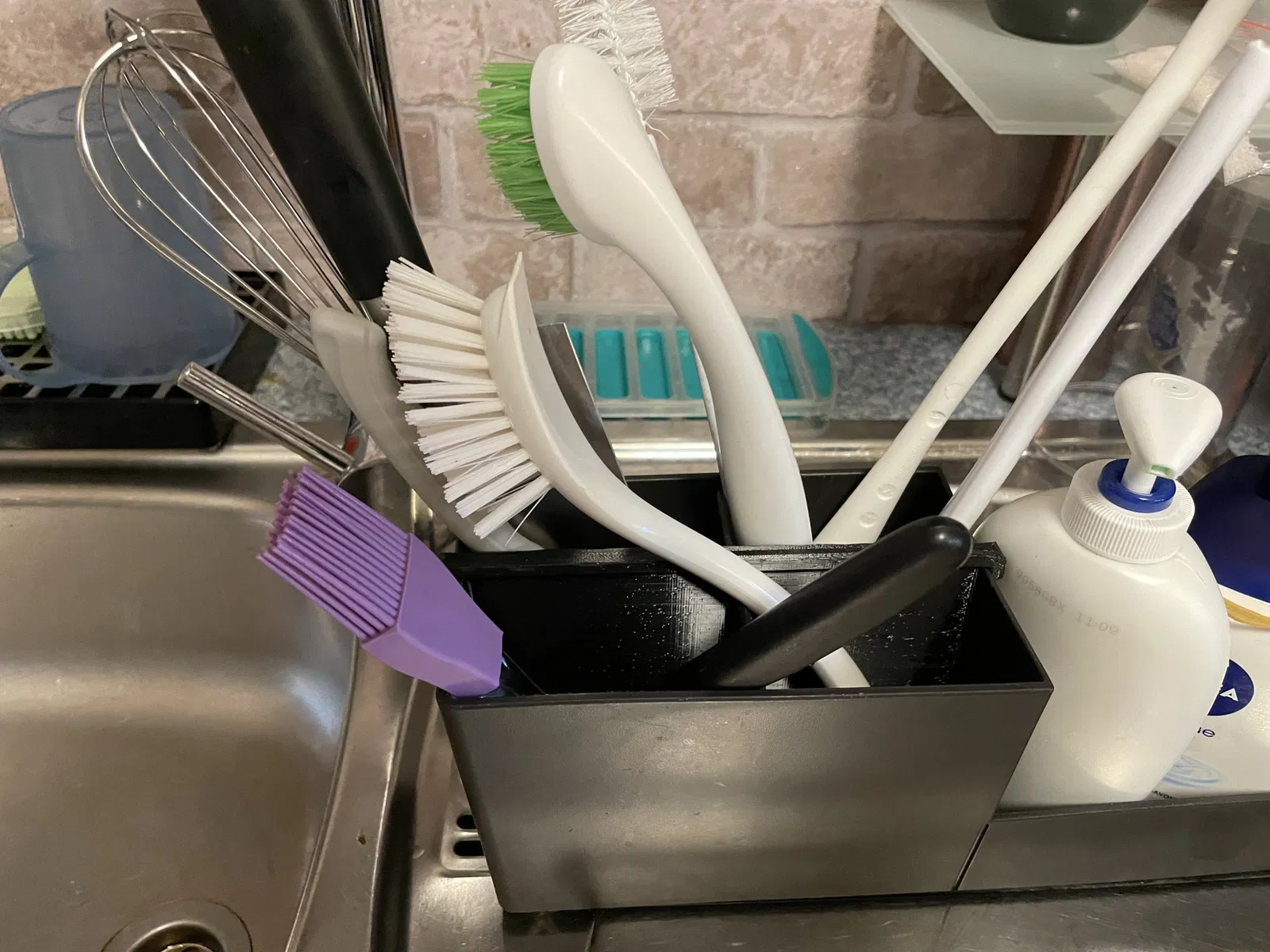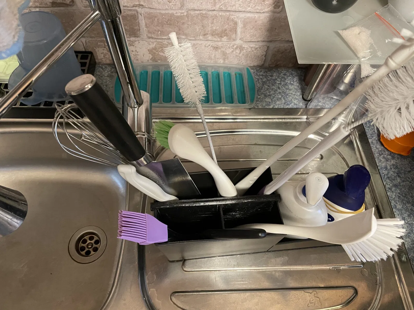 Bạn có bị làm phiền bởi những dụng cụ nhà bếp bị đổ khi đang khô không? Những bàn chải chai đổ đã làm tôi khó chịu. Đây là giải pháp một vách ngăn và không còn gì bị đổ nữa. Vách ngăn có thể dễ dàng trượt vào khay rửa và giữ rất chắc.