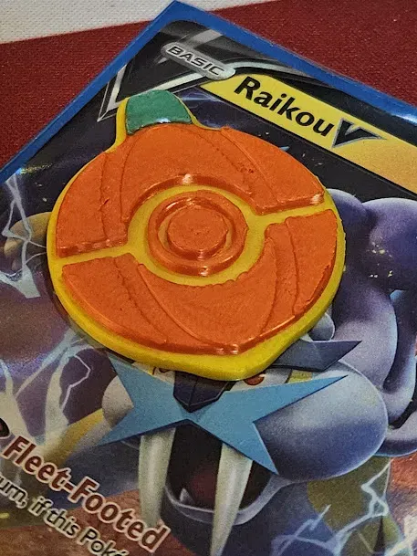 Một token TCG được mô phỏng theo quả bóng poké, với chủ đề bí ngô cho mùa lễ hội ma quái. Tôi sử dụng chúng để theo dõi một số hành động trong suốt trò chơi.