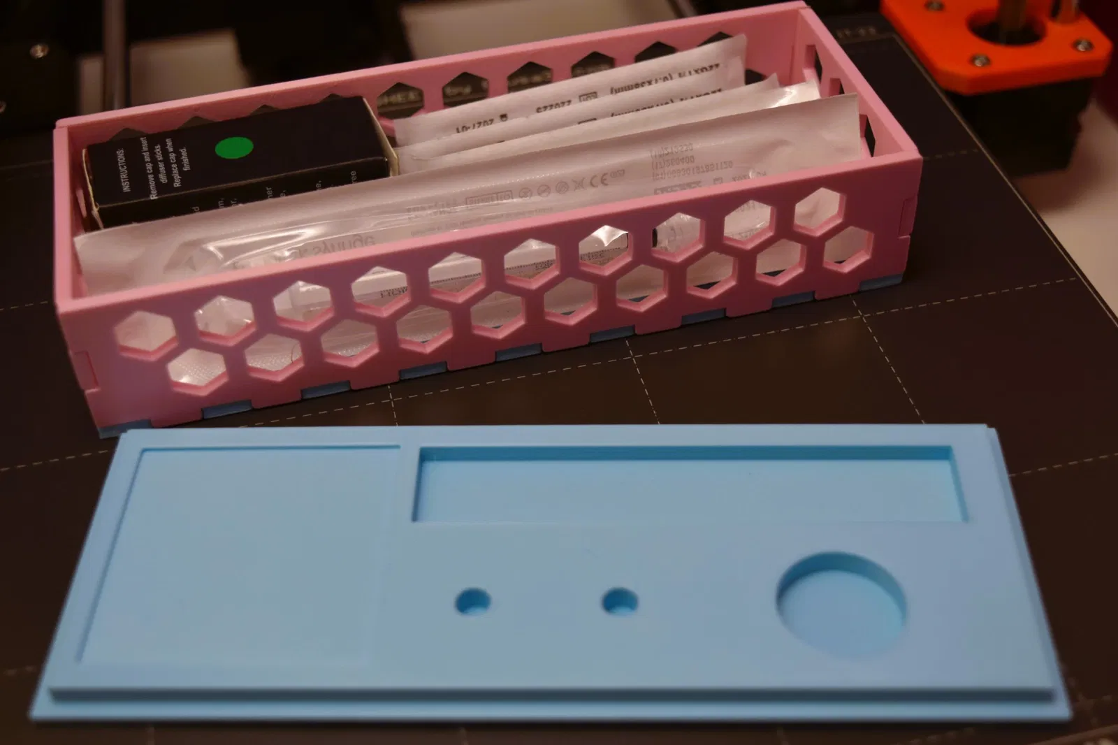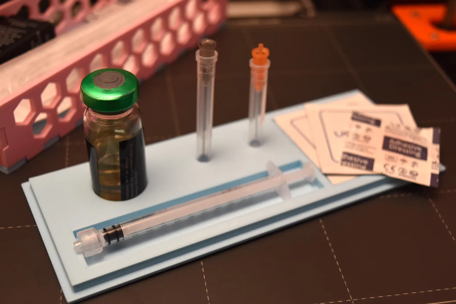 Bộ Dụng Cụ Tiêm Y Tế Du Lịch Gọn Nhẹ ##### - từ ElectricMagpie Giới thiệu Bộ Dụng Cụ Tiêm Y Tế Du Lịch Gọn Nhẹ! Một bộ dụng cụ du lịch tiện lợi và thực tế cho việc tiêm y tế. Với thiết kế gọn nhẹ, nó được trang bị một giá đỡ để giữ lọ thuốc, kim tiêm, ống tiêm, khăn lau và băng cá nhân. Đừng bao giờ lo lắng về việc đánh mất hoặc quên thiết bị y tế cần thiết của bạn nữa. Bộ dụng cụ này hoàn hảo cho những người thường xuyên đi du lịch hoặc những cá nhân cần tiêm thuốc khi đang di chuyển. Giữ mọi thứ được tổ chức và dễ dàng tiếp cận, đảm bảo một trải nghiệm suôn sẻ và không căng thẳng. Đừng để việc tiêm thuốc cản trở chuyến đi của bạn! Thiết kế tham số với đường kính lỗ 22mm cho các lọ thuốc 10ml điển hình và 2 x 6mm cho kim tiêm. Xin lưu ý, đây không phải là một container cho kim tiêm đã sử dụng! Vui lòng vứt kim tiêm vào thùng rác y tế thích hợp. Việc không thực hành xử lý an toàn và kỹ thuật vô trùng có thể dẫn đến ô nhiễm của mũi tiêm và gây hại cho người sử dụng hoặc nhiễm trùng.