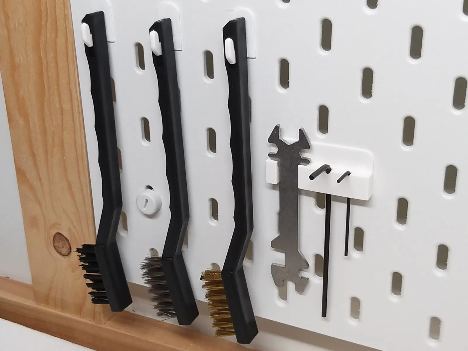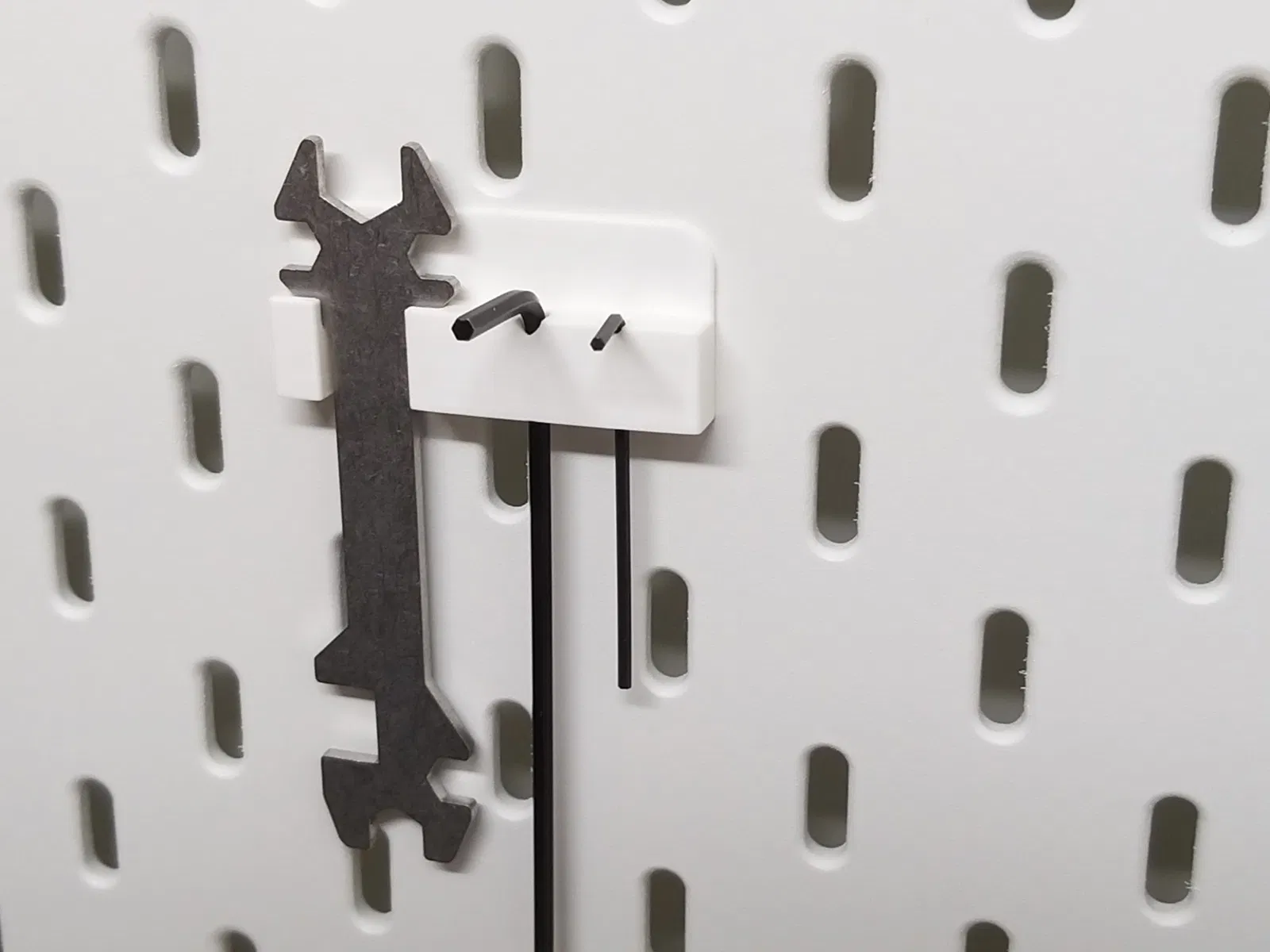 Giá đỡ được thiết kế để gắn lên bảng đinh Skådis của IKEA với độ dày bảng là 5.2mm.