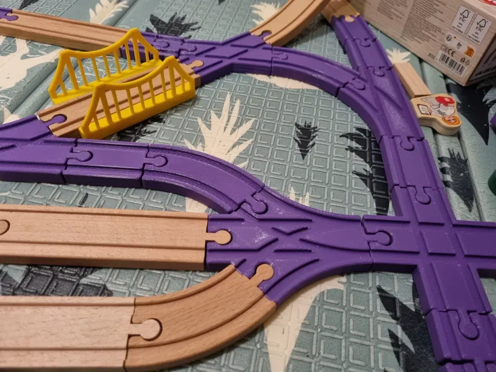 Ban đầu tôi đã thử in từ bộ này để mở rộng đường ray bằng gỗ của Lidl/Playtive, bộ này có rất nhiều chi tiết, nhưng thật không may là các đầu nối không khớp với bộ này. Cuối cùng tôi đã quyết định thiết kế riêng của mình.