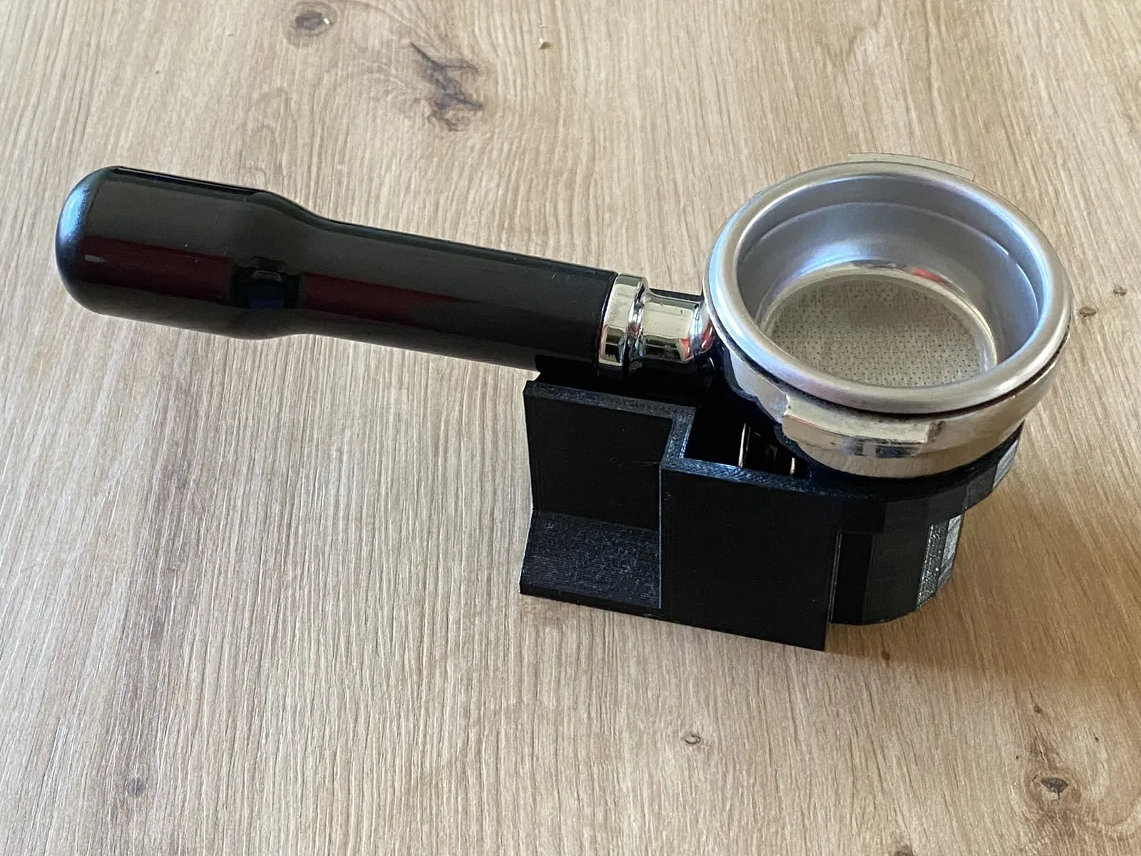 In nó bằng PETG hoặc các vật liệu ổn định nhiệt độ tương tự, vì portafilter cũng có thể được đặt lên trên khi bị nóng.
