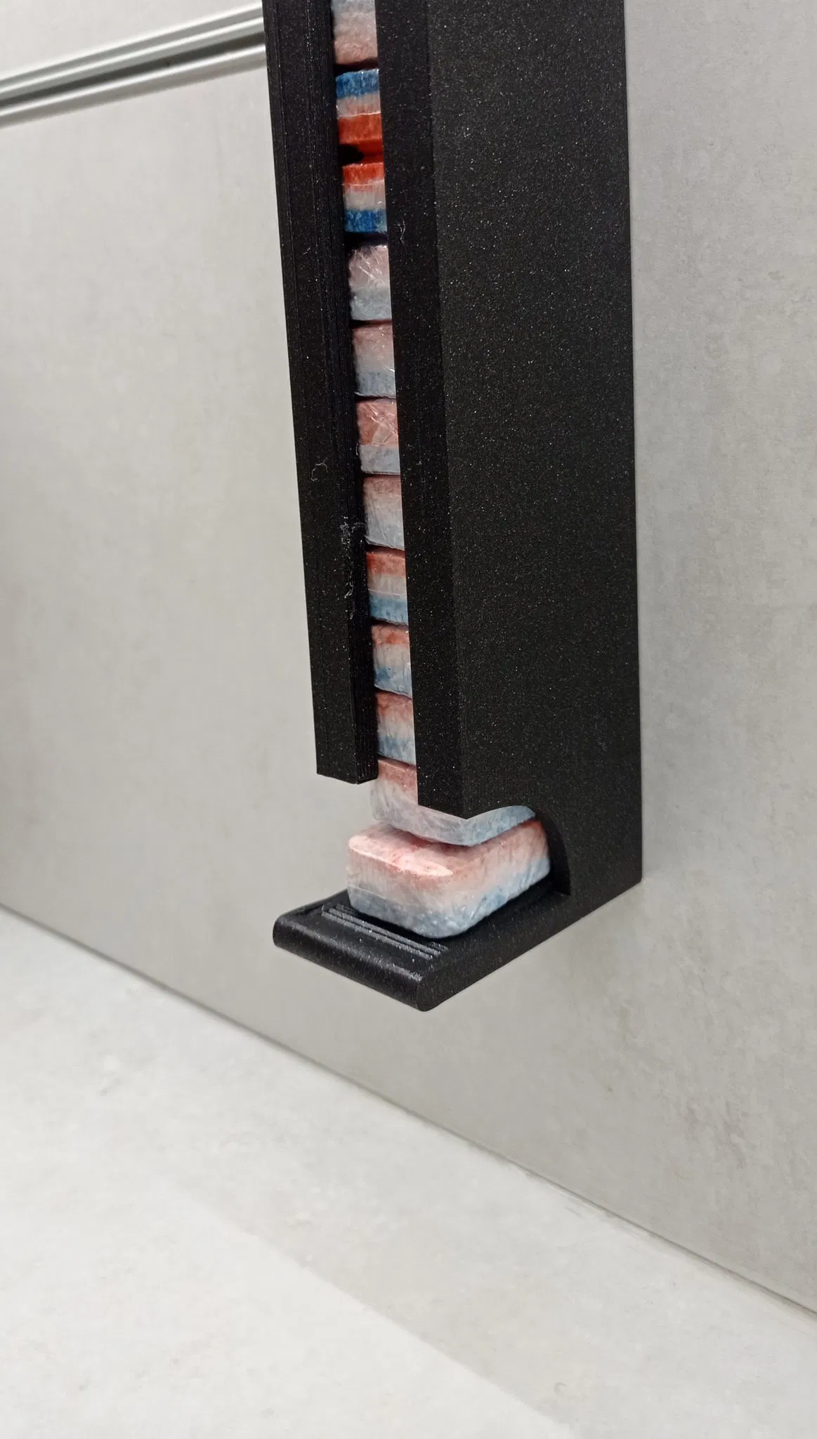 Bên trong có các khe trượt và cắt bên giúp dễ dàng kéo một viên ra trong khi các viên còn lại trượt xuống mà không bị kẹt.