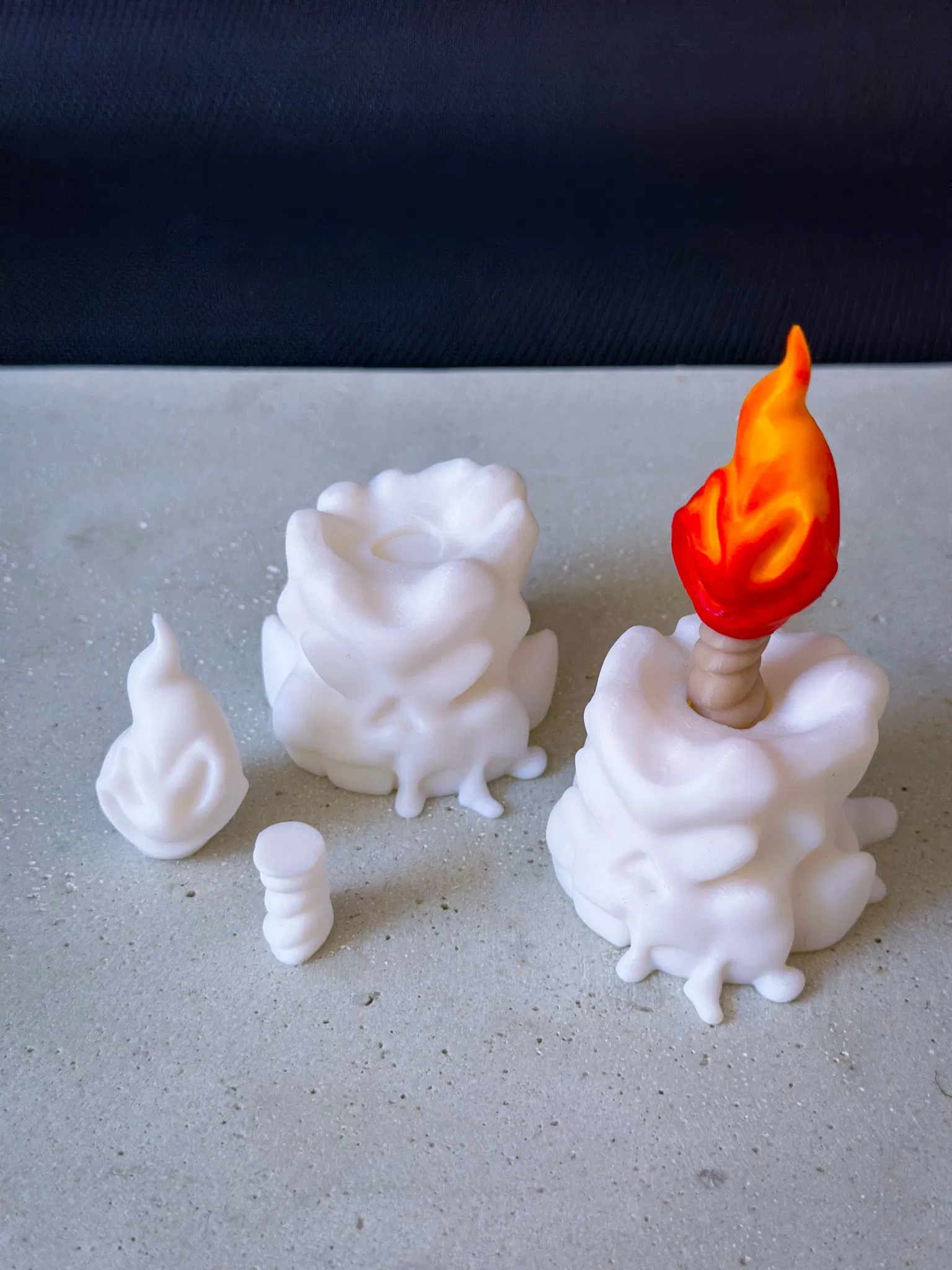 STL: nến với ngọn lửa dưới dạng các phần in riêng biệt (bạn cần keo để ghép chúng lại với nhau sau đó)
