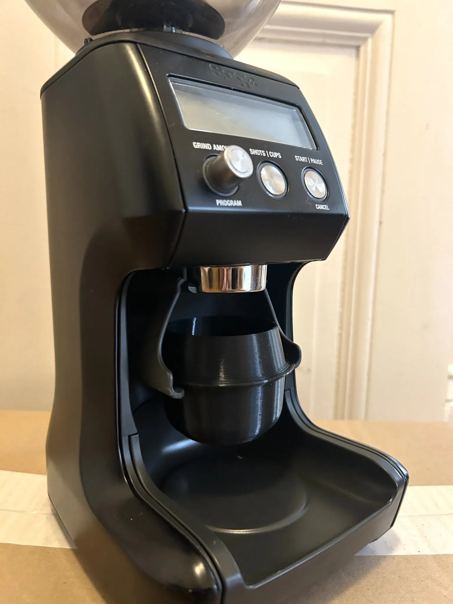 Đây là một cốc đo đơn giản cho máy xay cà phê Sage (hoặc Breville) Dose Control Pro hoặc Smart Control Pro và vừa với giá đỡ portafilter 58mm của nó và portafilter mà không gây lộn xộn.