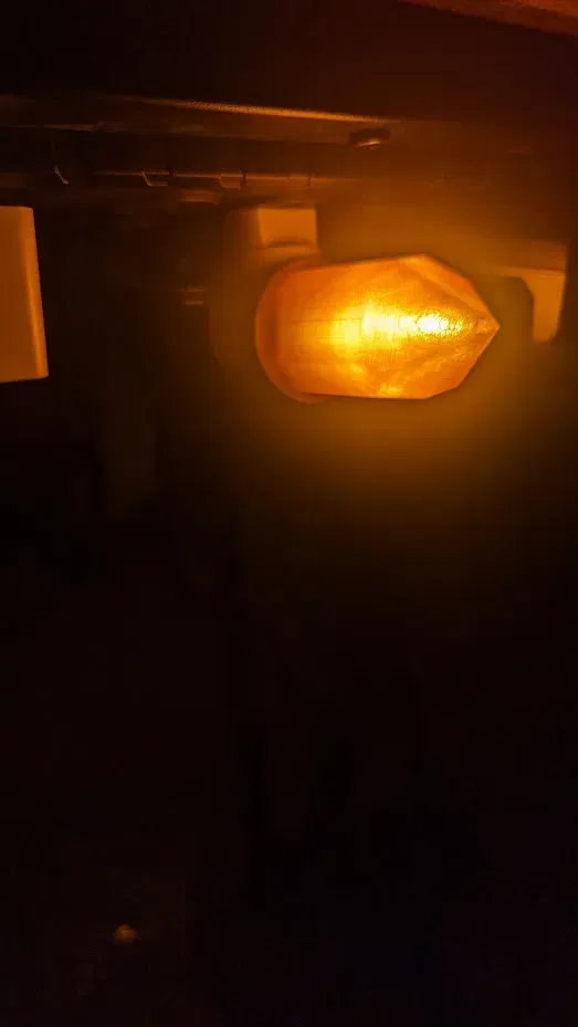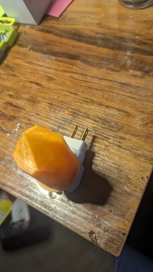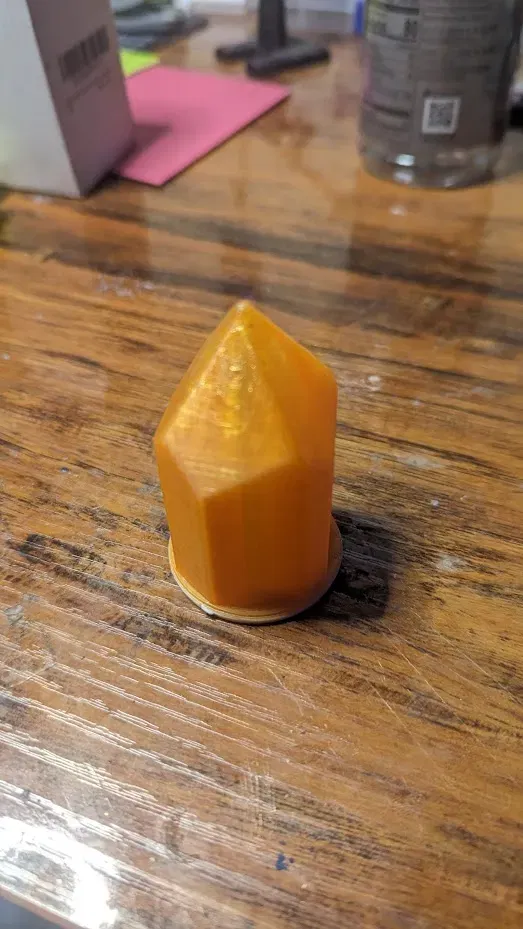 Khoảng 70mm cao và 41mm đường kính. Tôi đã in nó bằng PLA+ màu cam trong suốt. Một bổ sung tuyệt vời cho trang trí phòng tắm và để làm mờ ánh sáng sáng. Đặt với một viền 3mm và 25% độ đầy.