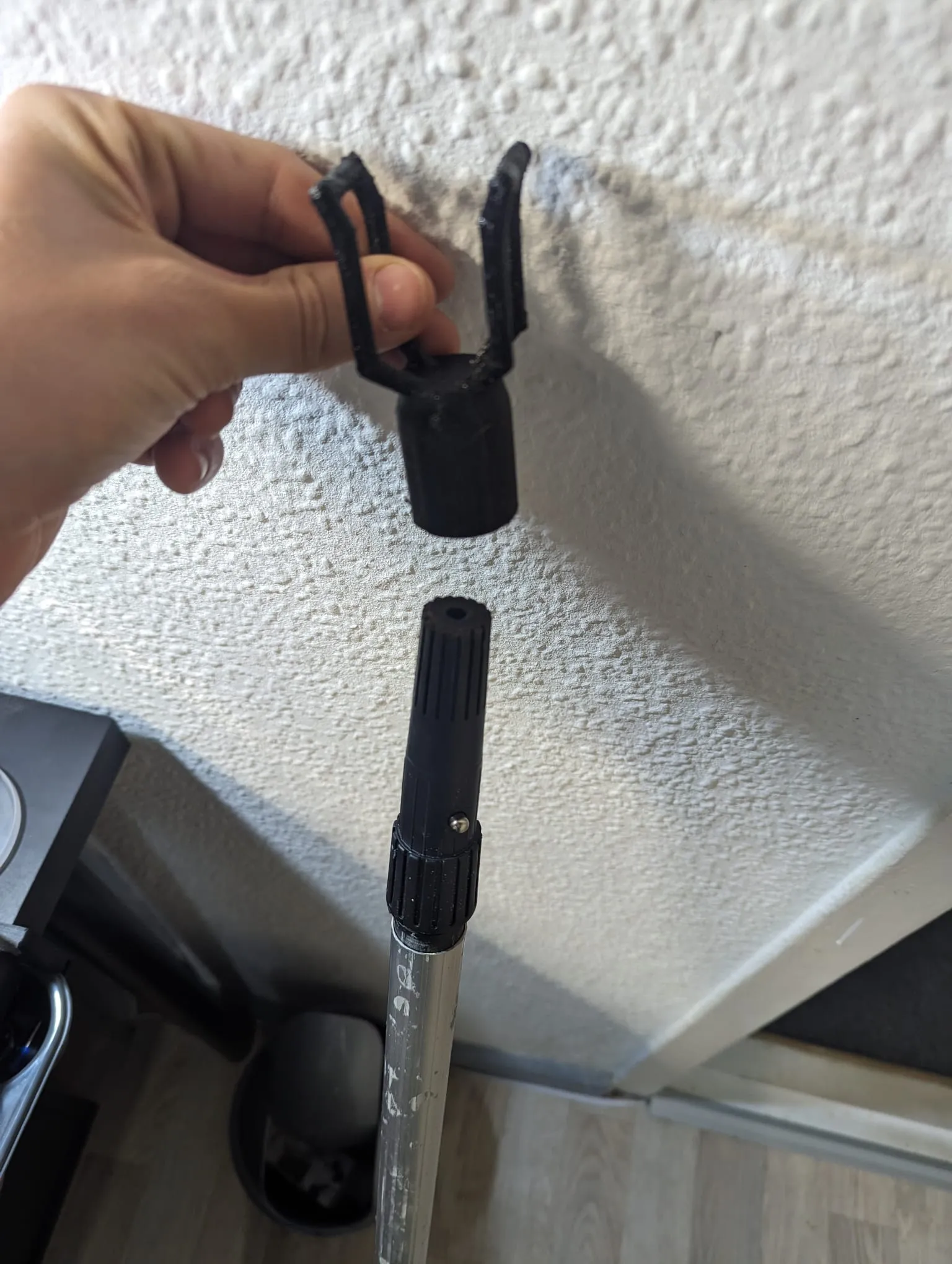 Gắn Clip Stick mà tôi đã làm cho cần sơn telescopic, đường kính khoảng 22mm. Không có bộ phận di chuyển, giữ cổng một cách tuân thủ. Khớp ma sát, không cần keo.