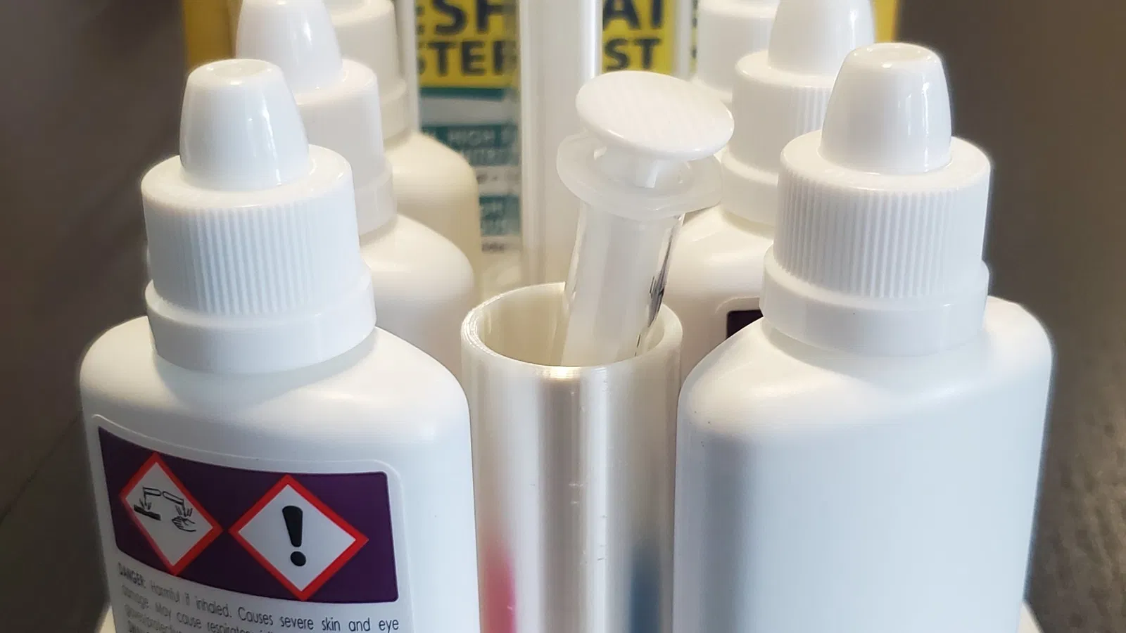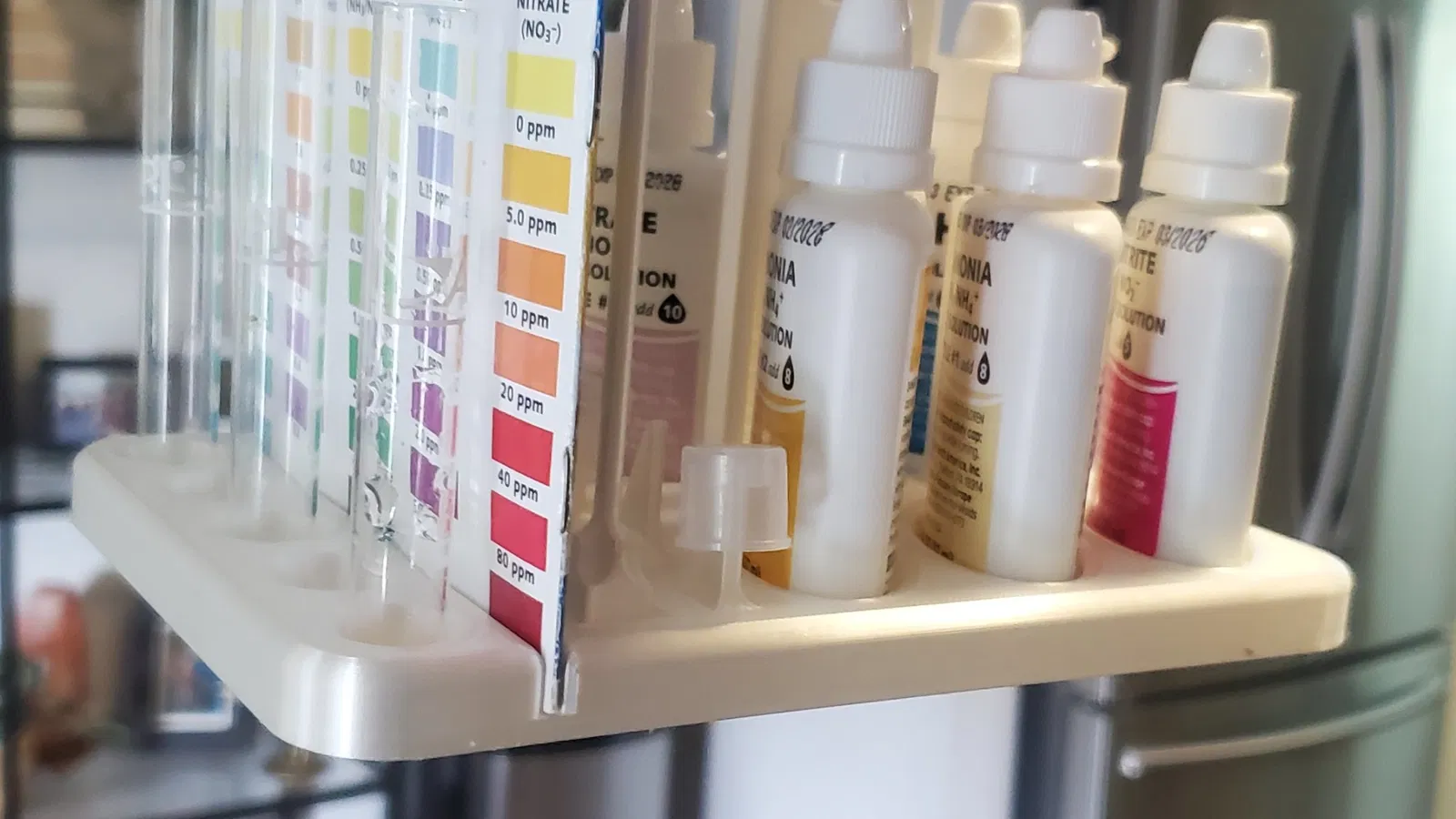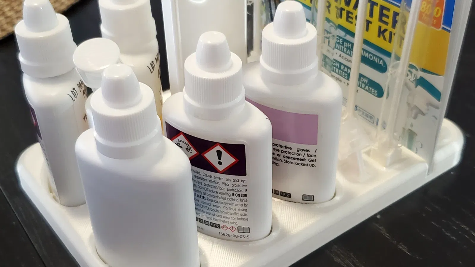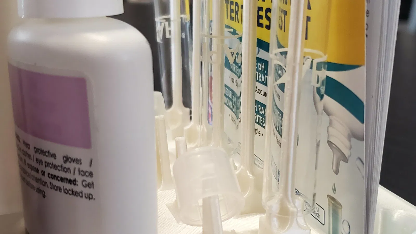 Cái này có chỗ cho 5 ống nghiệm và 6 chai nhỏ giọt, tôi không bao giờ kiểm tra pH cao nên vì lý do đối xứng, tôi đã bỏ nó ra khỏi giá.