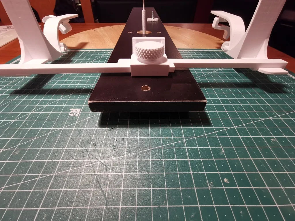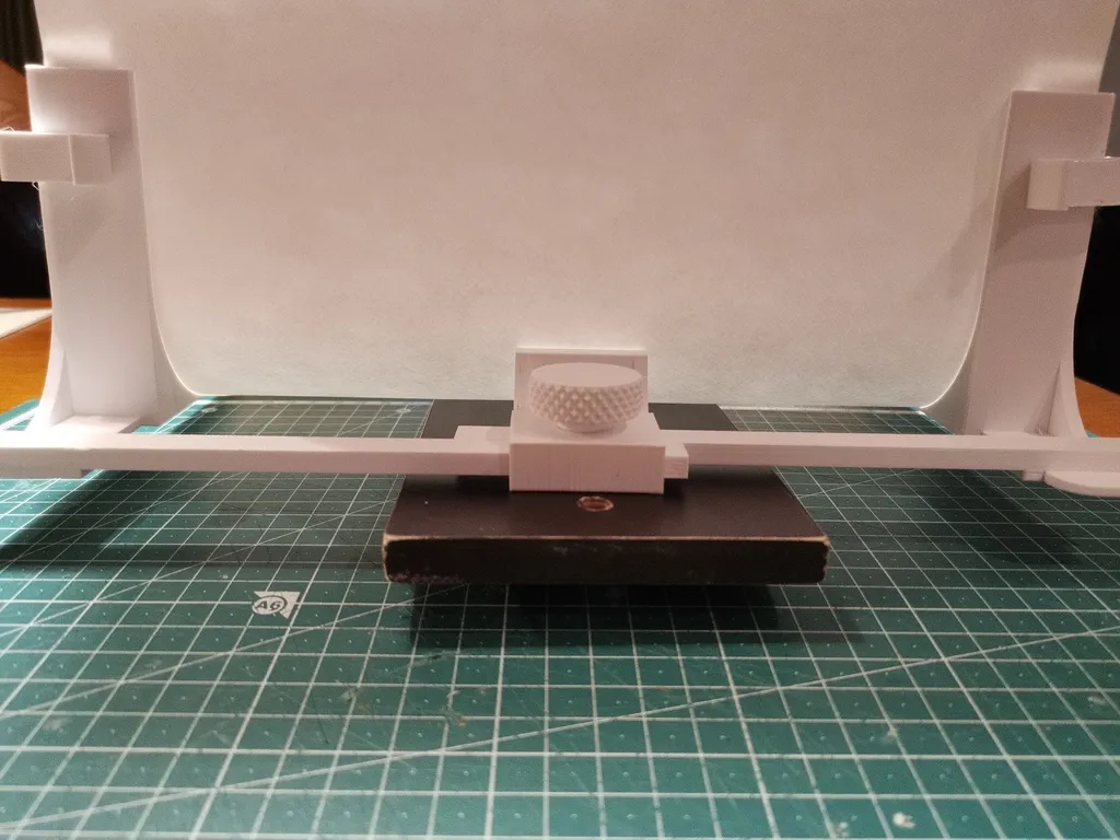 Với vít lớn, khoảng cách giữa hai chân có thể được điều chỉnh, để phù hợp với các kích thước giấy hoặc nền khác nhau. Với khoảng 32,5cm ở vị trí rộng nhất.