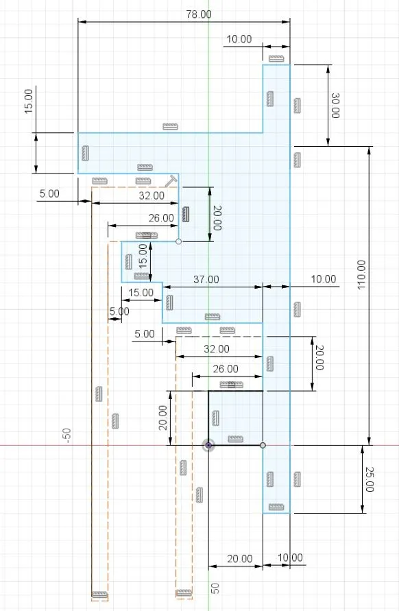Kích thước bên trong của các bàn là 26mm sâu/20mm cao. Bên ngoài, các bàn dày 32mm. Trong một trong các hình với các kích thước, các bàn được vẽ bằng đường nét màu nâu.