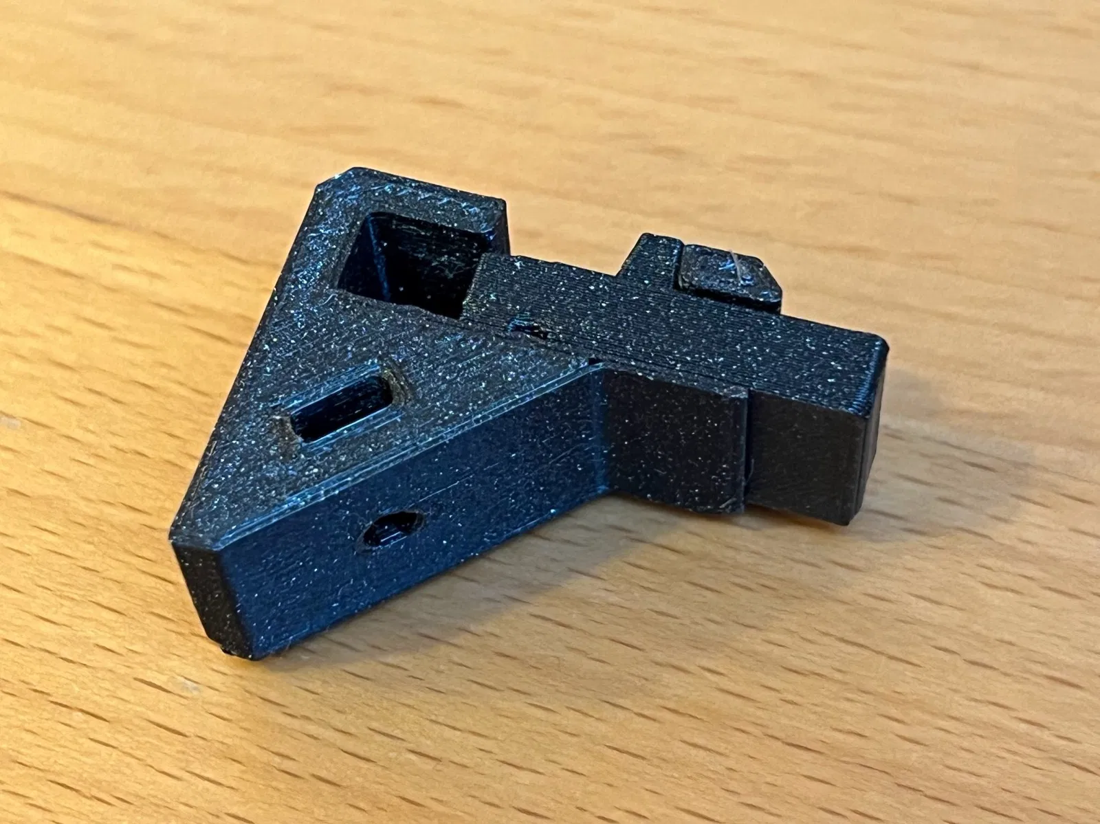 Vì vậy, đây là phiên bản của tôi. Phiên bản của tôi nên dễ chịu hơn nhiều. Bạn có thể in mọi thứ chỉ cần nằm phẳng trên bề mặt. Chỉ còn một phần nhô ra duy nhất, mà không ảnh hưởng đến độ chính xác theo bất kỳ cách nào. Cũng nên in tốt trên vòi phun 0.5 và 0.6. Giống như trước đây, bạn chỉ cần đẩy mọi thứ lại với nhau. Không giống như trước đây, bạn không cần một đai ốc vuông M3 để lắp ráp, bạn chỉ cần vặn vào nhựa - nó sẽ giữ chặt lại. Ngoài ra, nắp sẽ được giữ cố định bởi vít, điều mà tôi nghĩ là khá tốt.