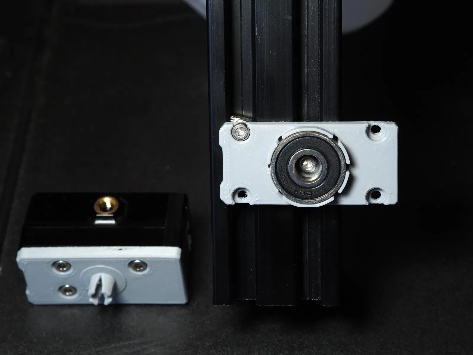 Nếu vòng bi quá lỏng trong giá đỡ, hoặc bạn muốn có thêm bảo hiểm, hãy in "Giá đỡ hỗ trợ" nằm giữa giá đỡ và thanh nhôm trong bước 4.